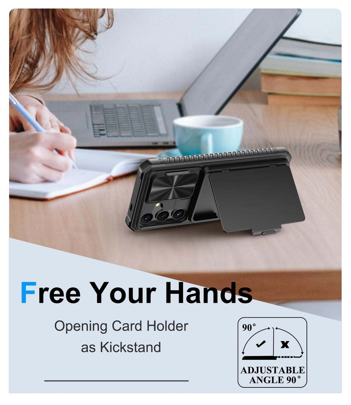 Bxyjy For Samsung Galaxy S24 Case Wallet, Built In Card Holder (4 5 Cards) & Slide Camera Cover & Kickstand, Military Grade Prot