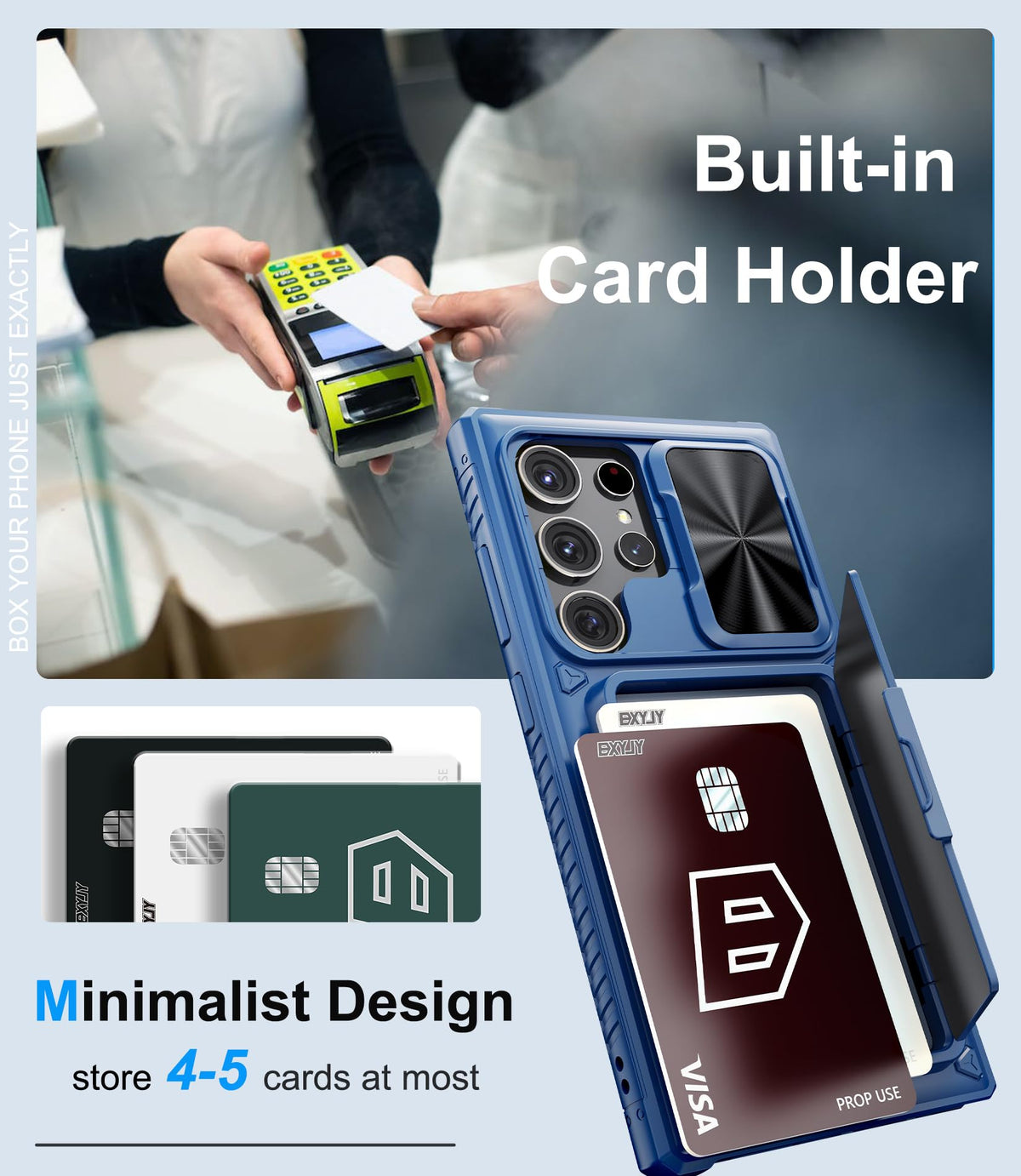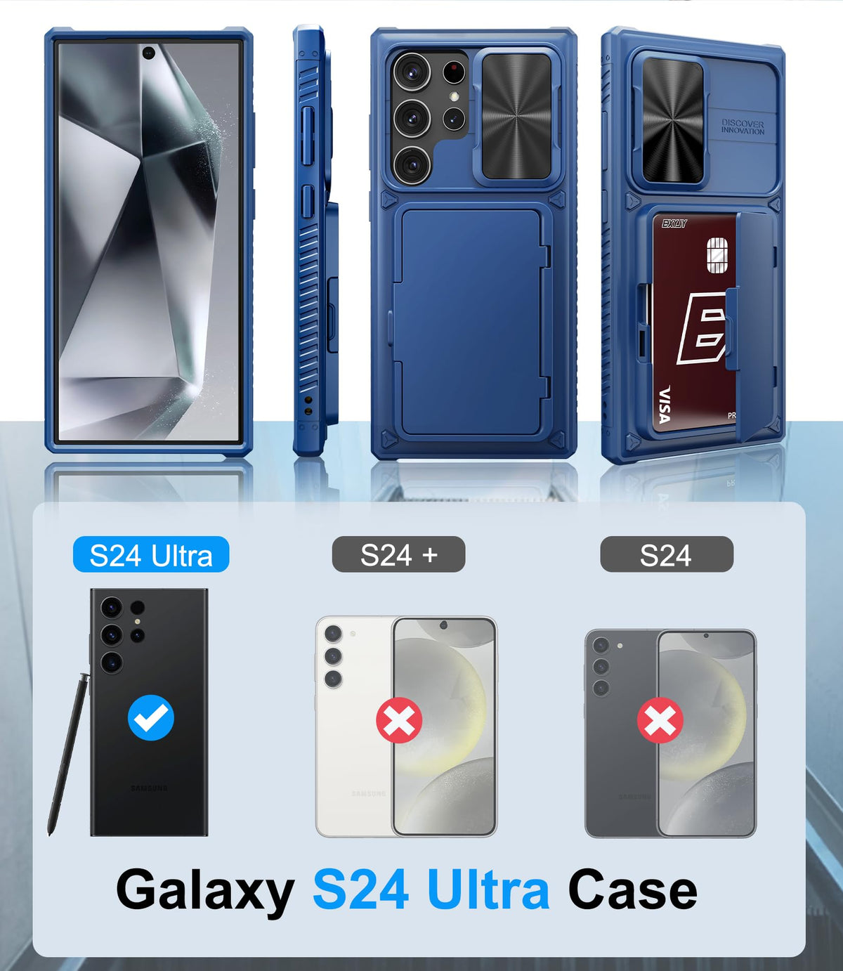 Bxyjy Phone Case For Samsung Galaxy S24 Ultra Newly Released In 2024. ? This Samsung S24 Ultra Case Is Built In A Card Holder Which Can Store 4-5 Cards At Most, So You Can Use It As A Wallet Case. ? This Galaxy S24 Ultra Case Wallet Can Be Used As Kickstand To Release Your Hands. ? This Galaxy S24 Ultra Case With Card Holder Has A Slide Camera Cover Which Offers Complete Camera Protection As You Wish. ? This Galaxy S24 Ultra Case With Stand Is Constructed For Military-Grade Drop Protection, Which Is Rugged, Hard Shockproof For Daily Protection. ? This Minimalist Galaxy S24 Ultra Phone Case With Camera Protector Is Featured In Multifunctional And Practical To Ease Your Life. ? Multicolors For Samsung Galaxy S24 Ultra Case With Wallet: Dark Black, Navy Blue, Camo Green, Rose Gold, Lavender Purple, Burgundy Red. ? This Galaxy S24 Ultra Wallet Case Is For Men And Women. ??Package Includes?One Bxyjy Samsung Galaxy S24 Ultra Case With Card Holder ??Notice: The Samsung S24 Ultra Wallet Case Does Not Support Wireless Charging. ??Satisfying Service: If You Have Any Questions Or Quality Problems With The Samsung S24 Ultra Phone Case, Please Get In Touch With Us Anytime. Bxyjy Phone Case For Galaxy S24 Ultra Featured In: ?Built-In Card Holder Which Also Can Be Used As Kickstand. ?Military Grade Drop Protection. ?Built In Slide Camera Cover. ?Matte Coating Exquisite Stylish Outlook. ?Premium Quality. ?Rugged Tough And Shock-Absorbent. ?Anti-Scratch, Anti-Fingerprint, Anti-Stains. ?Floating Button ?Reserve Lanyard Hole. ?Ultimate Touch Feeling. ?Non-Slip.