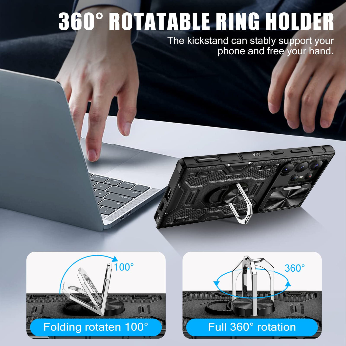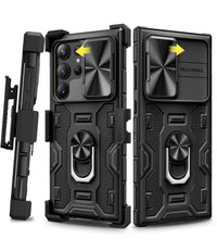 Caka For Galaxy S23 Ultra Case With Stand & Slide Camera Cover & Belt Clip Holster, Built In 360 Rotate Ring Holder Magnetic Pro