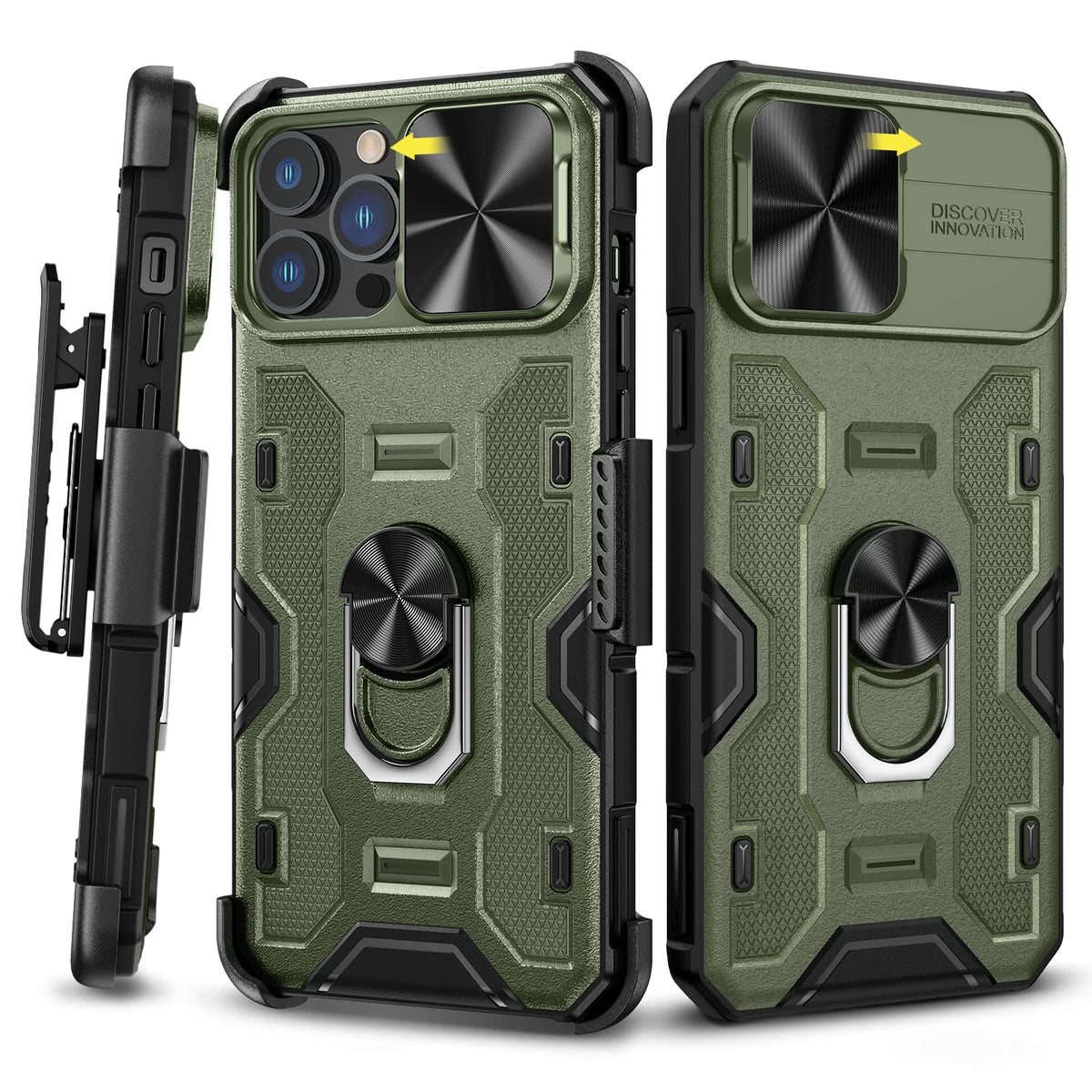 Iphone 13 Pro Max Case, Iphone 12 Pro Max Case With Camera Cover Kickstand & Belt-Clip Holster Protective Phone Cover Case Package13 Pro Max Case With Kickstand*1 Features: Multiple Protection Design For 12 Pro Max Case 13 Pro Max Phone Case With Belt-Clip Holster Made Of Hard Pc Back Cover, Soft Tpu Frame And Slide Camera Cover Will Provide Shockproof Protection, Scratch Protection And Drop Protection Portable Kickstand Feature: This Iphone 12 Pro Max Case With Stand, Built-In 360A Fold-Able Kickstand Can Firmly Hold Your Phone For Horizontal Viewing Case For Iphone 12 Pro Max With The Stand Fits Comfortably Over Your Finger, Will Provide Security When Holding The Phone And Hands-Free Viewing Compatible With Car Magnetic Mount: Iphone 13 Pro Max Phone Case With Belt-Clip Holster, Built-In Ring Kickstand Magnetic Cover Will Compatible With Magnetic Car Mounts, Metal Patch On The Back Can Attach To Magnetic Car Mount To Improve Your Driving Experience Not Includes The Magnetic Car Mount Holder) Fit Body, Surround Protection:Fit For 13 Pro Max 12 Pro Max Perfectly,Activity And Flexible,Precise Cutouts Tips The Package Include: Iphone 12 Promax 13 Promax Case With Camera Cover*1