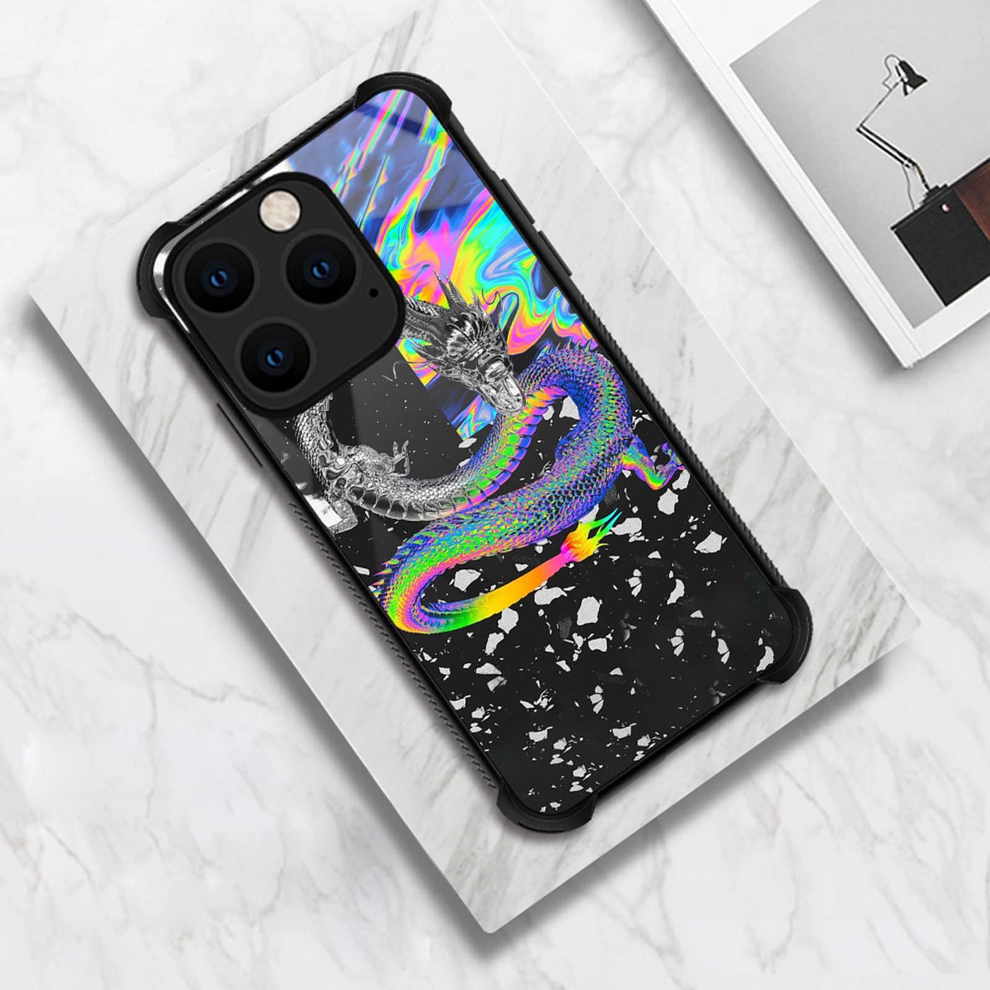 Carloca Compatible With Iphone 14 Pro Case,Trippy Dragon Colorful Graphic Design Shockproof Anti Scratch Drop Protection Case Fo