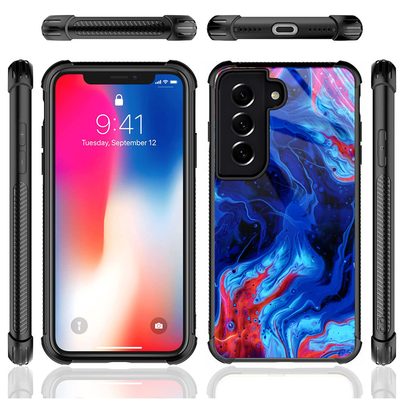 Carloca Compatible With Samsung Galaxy S21 Case,Blue Red Trippy Psychedelic Color Art Pattern Design For Girl Boy Shockproof Ant