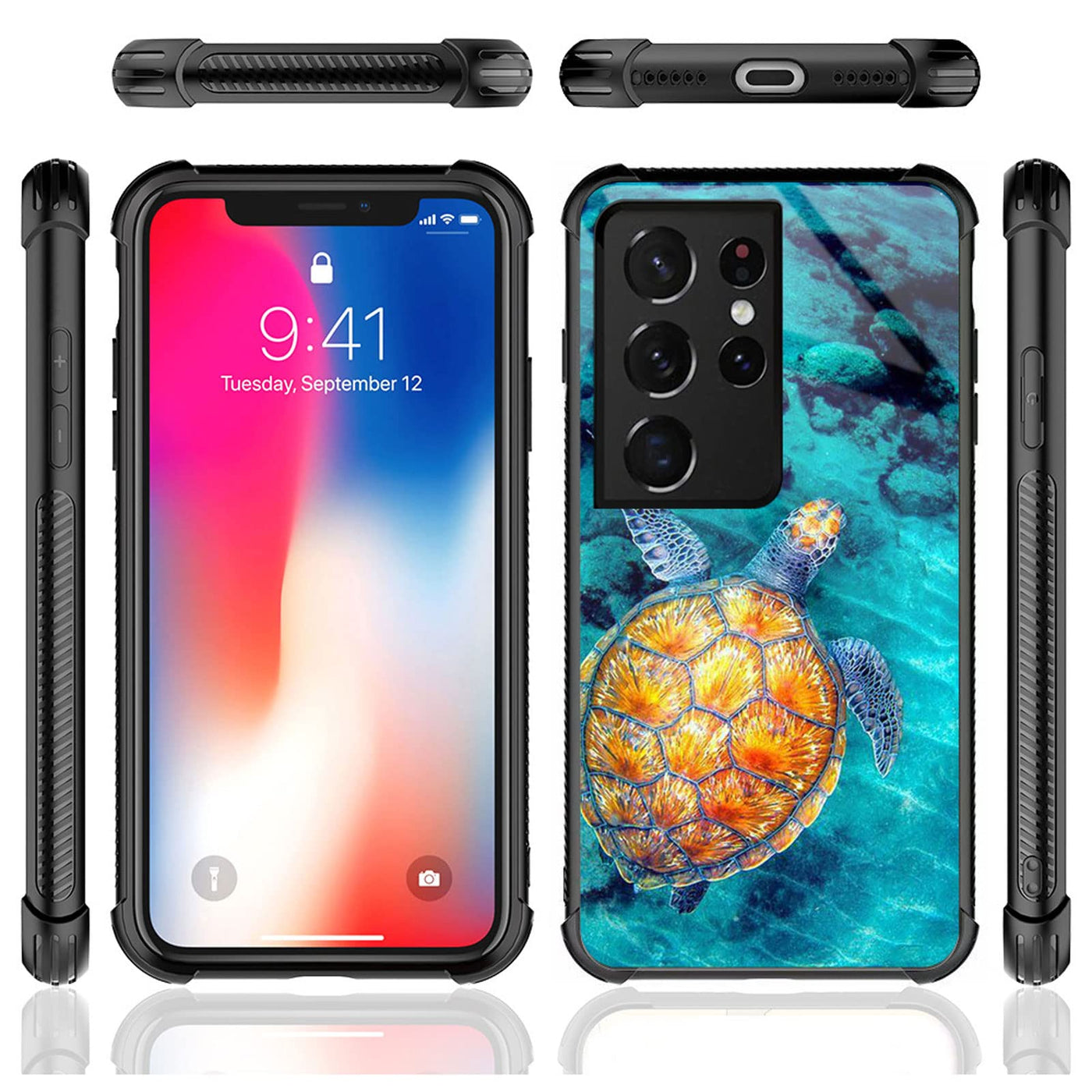 Carloca Compatible With Samsung Galaxy S21 Ultra Case,Sea Turtle Pattern Design For Girl Boy Shockproof Anti Scratch Case For Sa