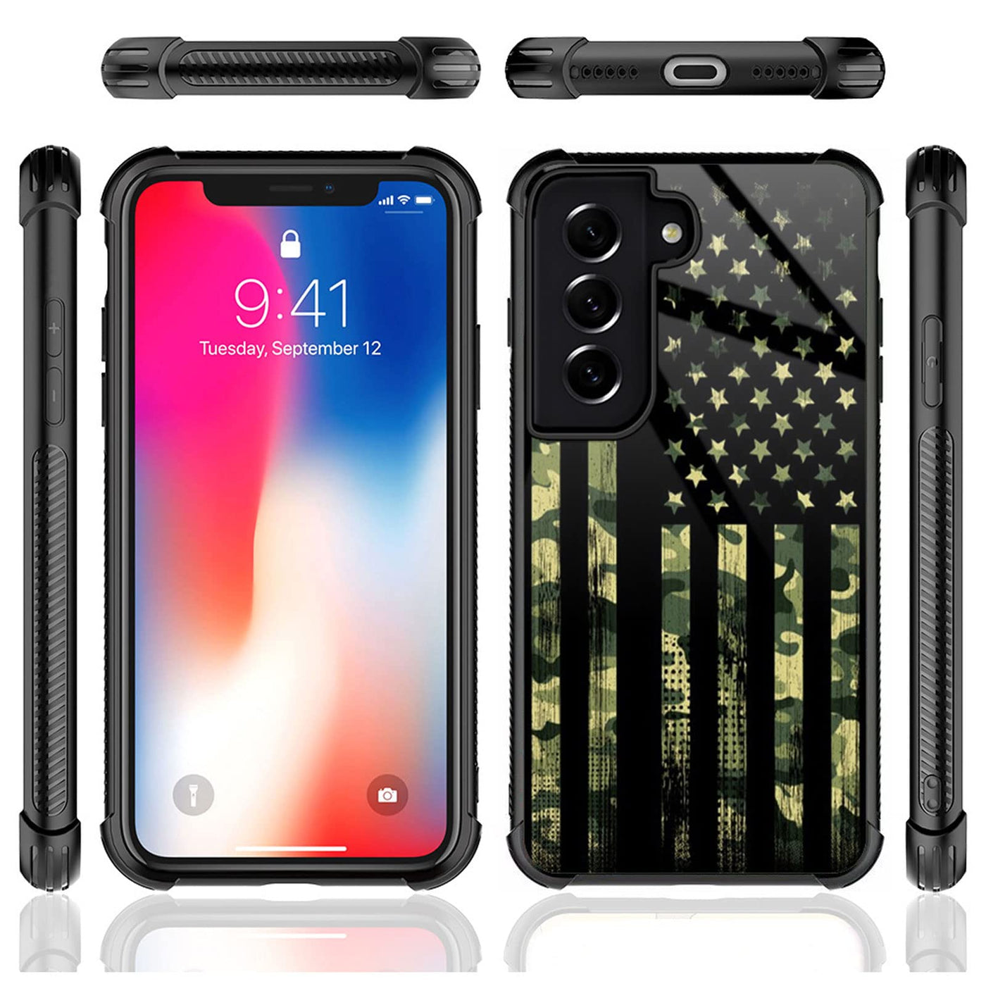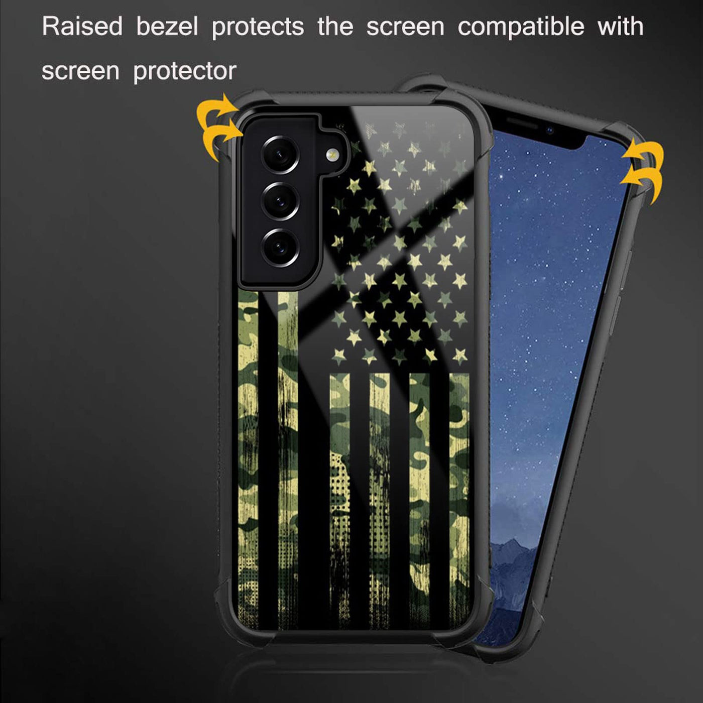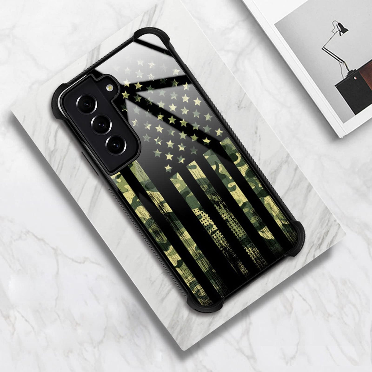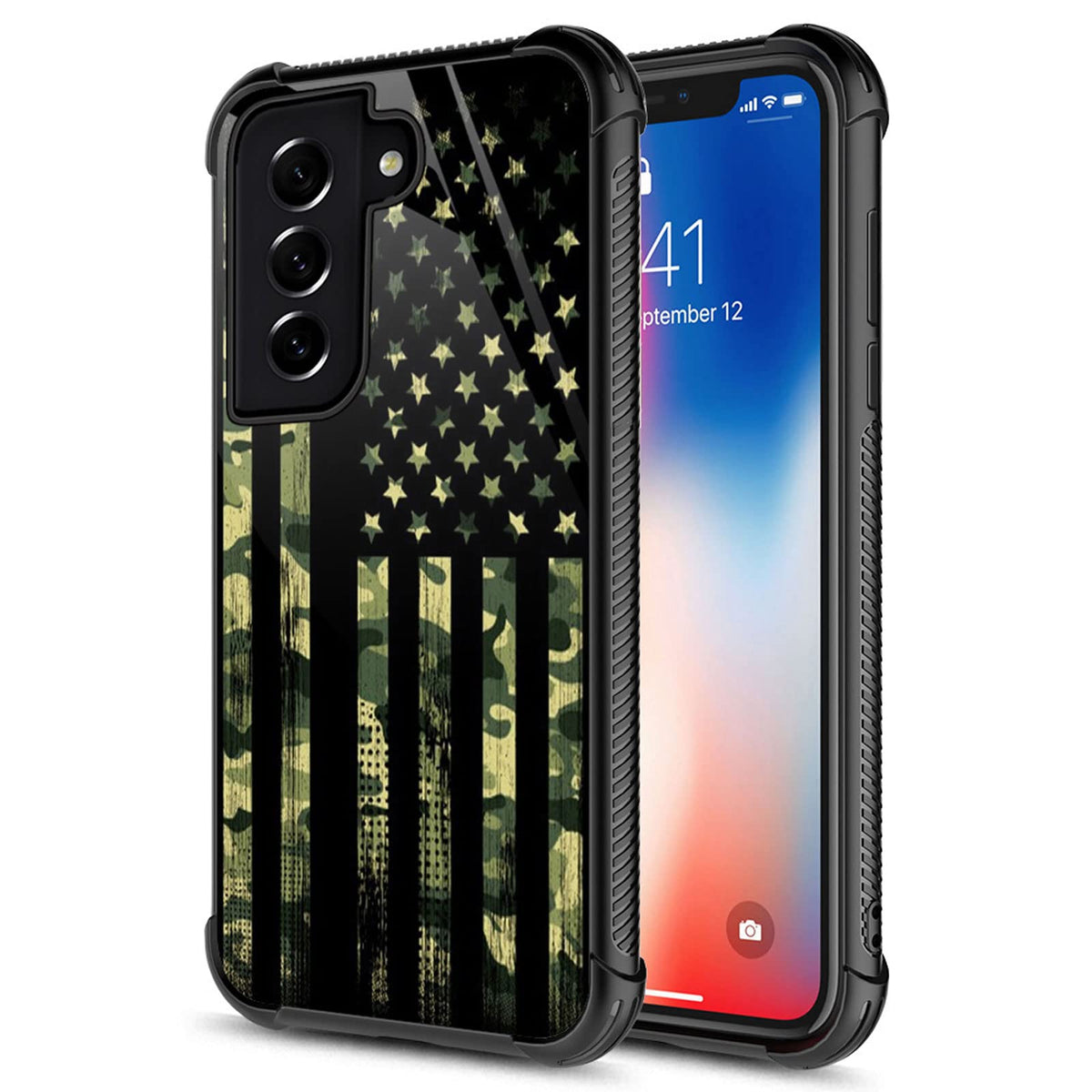 Carloca Compatible With Samsung Galaxy S22 Case,Camo American Flag Samsung Galaxy S22 Cases Graphic Design Shockproof Anti Scrat