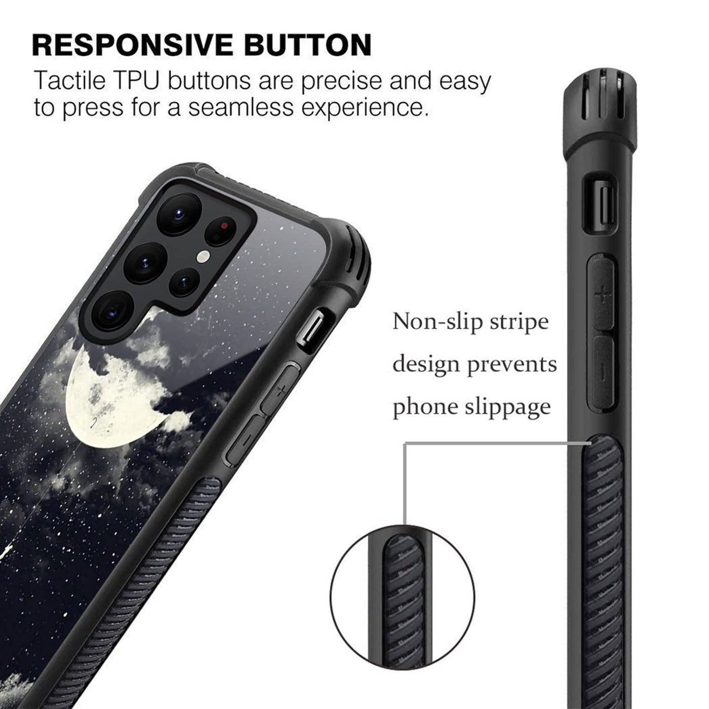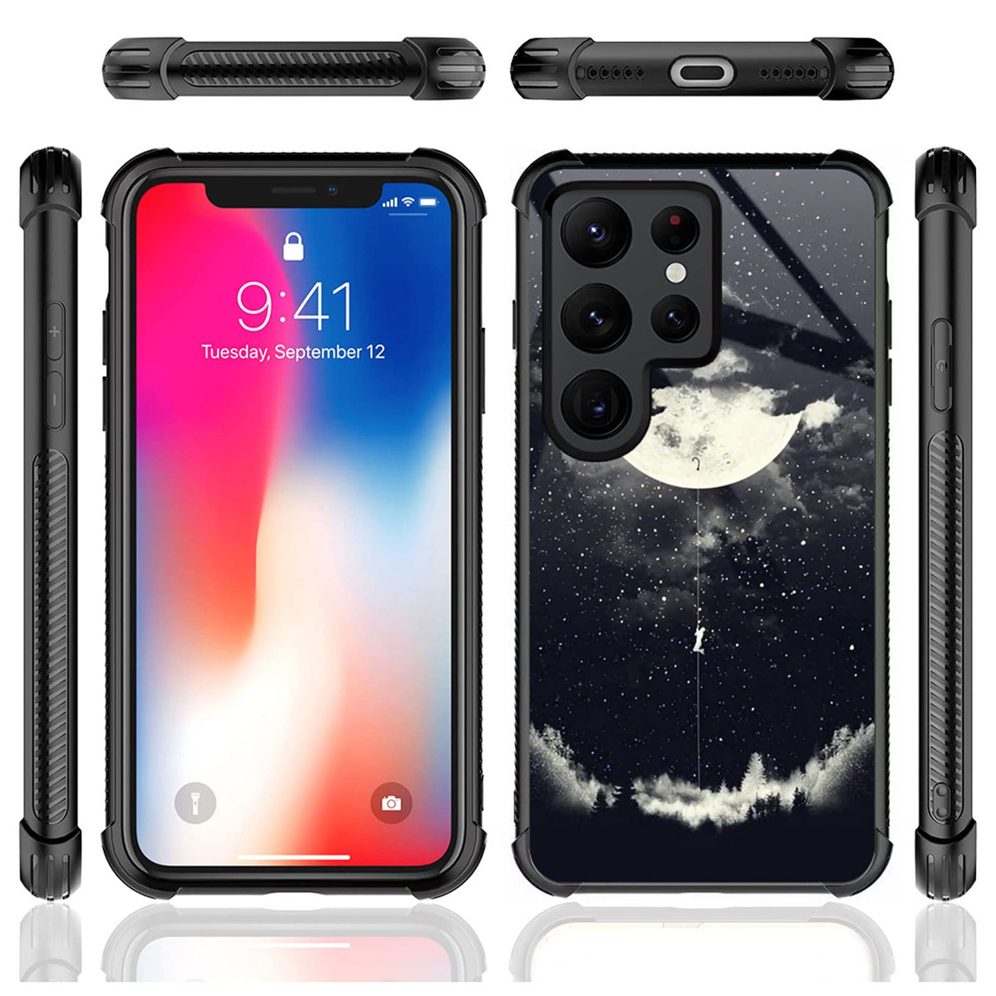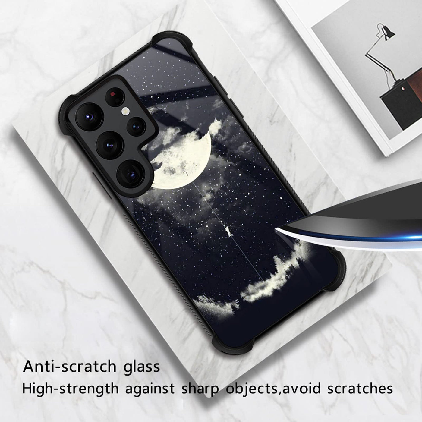 Carloca Compatible With Samsung Galaxy S22 Ultra Case,Climbing The Moon Pattern Design For Girl Boy Shockproof Anti Scratch Case
