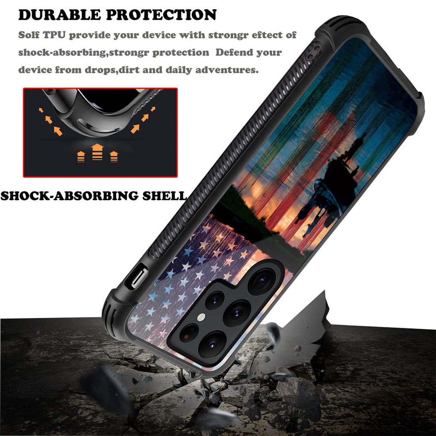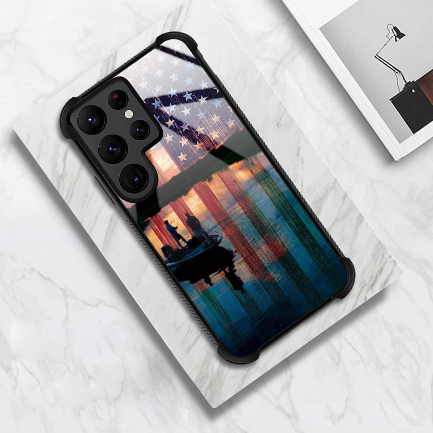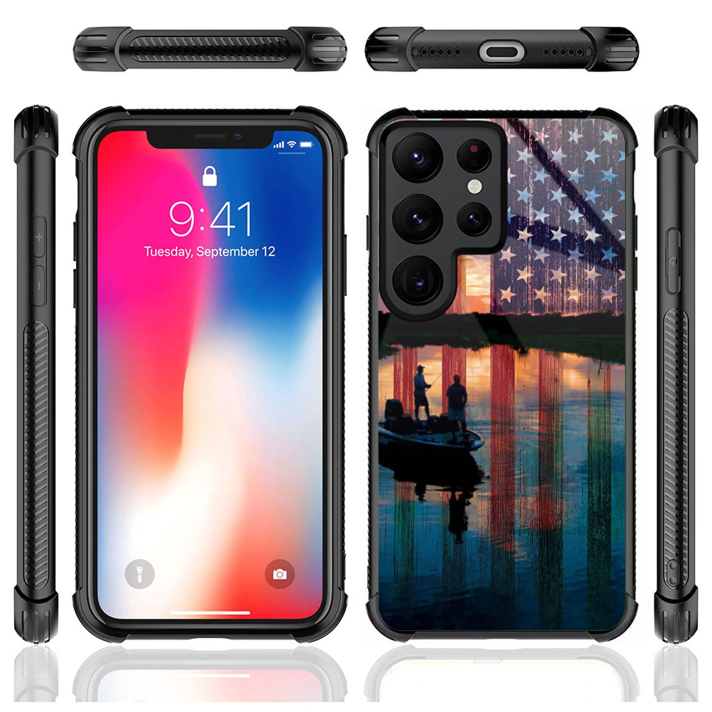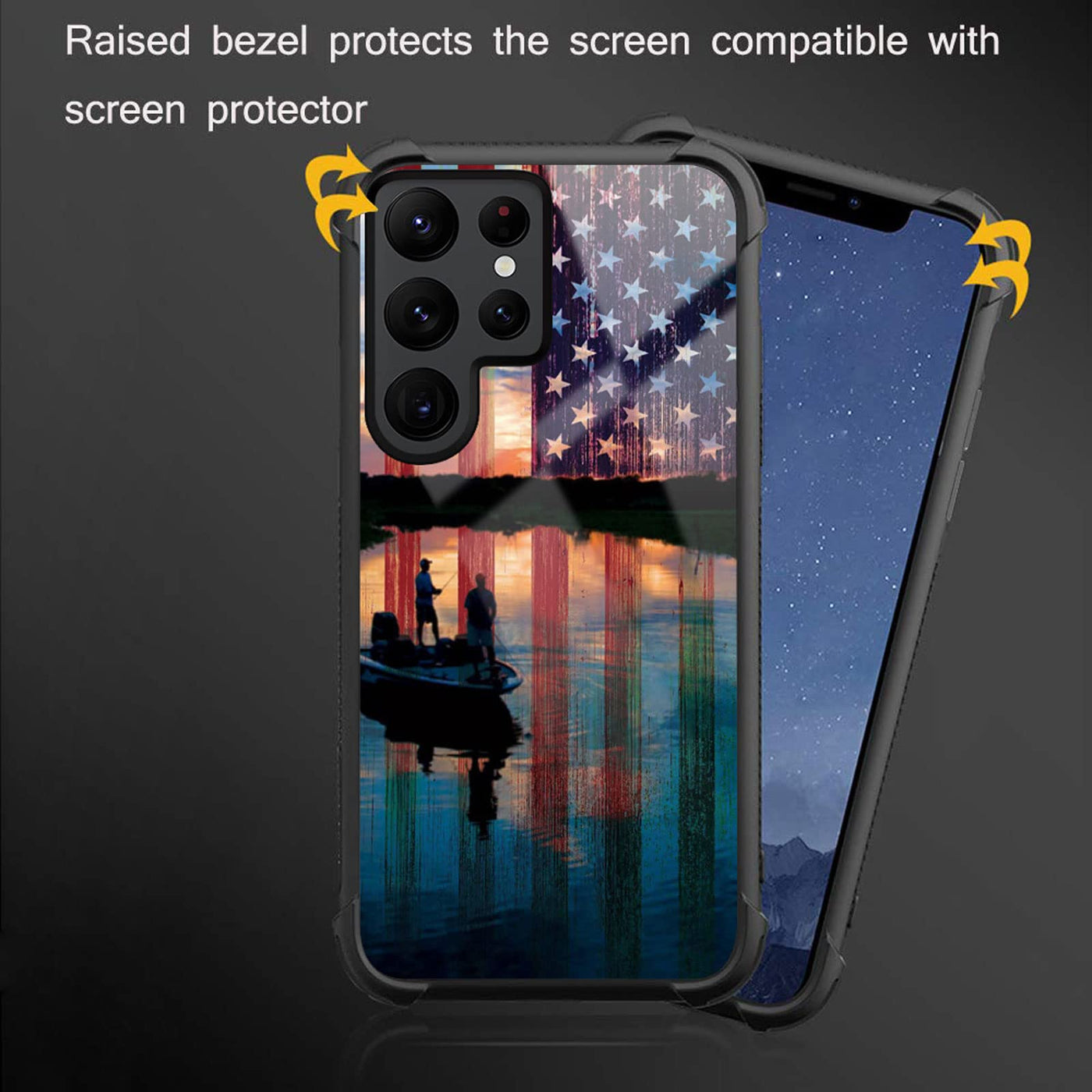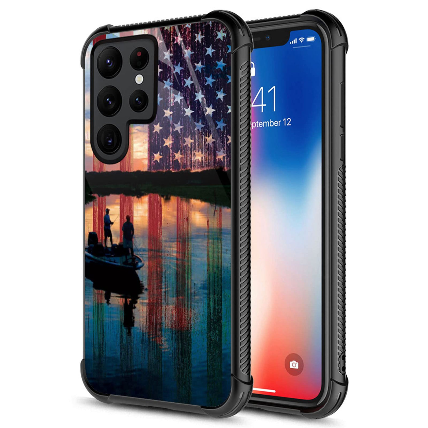 Carloca Compatible With Samsung Galaxy S22 Ultra Case,Fishing Red Usa Flag Samsung Galaxy S22 Ultra Cases Graphic Design Shockpr