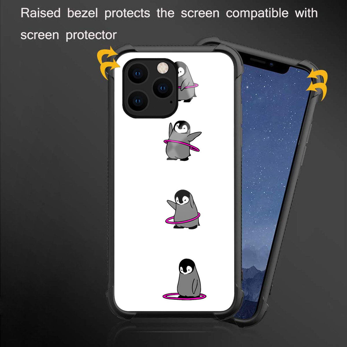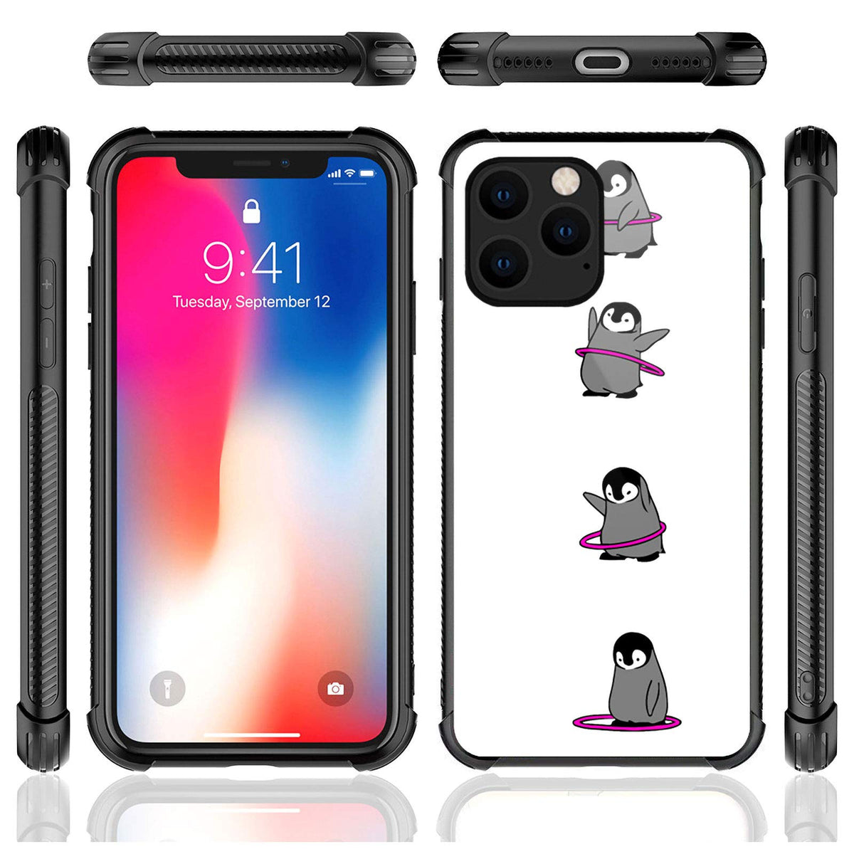 Q: What makes this case different from other iPhone 12 Mini cases?A: The unique Penguin Gymnastics design not only adds a creative flair but also utilizes advanced printing technology to create a vibrant, high-quality pattern. Additionally, its ultra-thin and lightweight design maintains the original feel of the phone.
