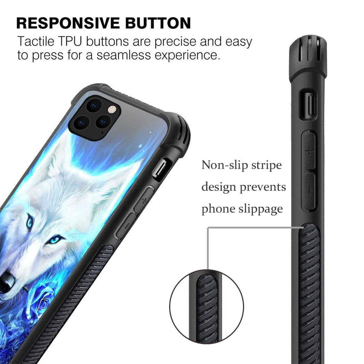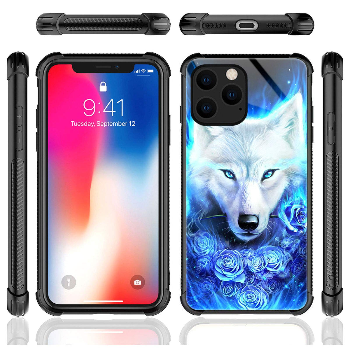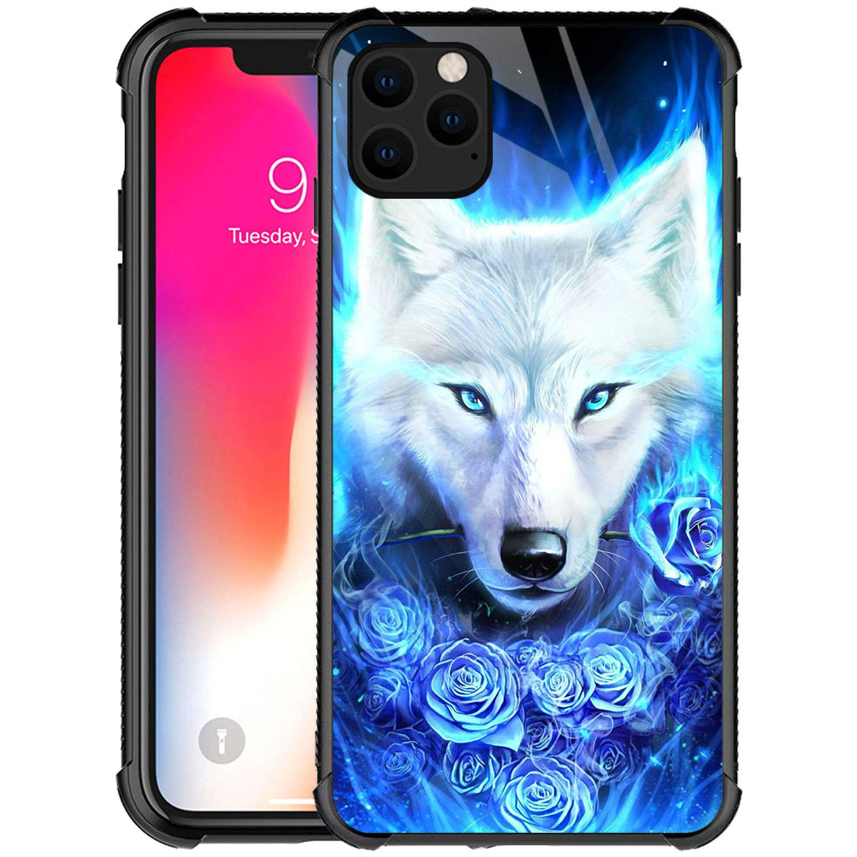 Carloca Iphone 12 Pro Max Case,White Wolf Flower Pattern Design Iphone 12 Pro Max Cases For Girls Women Boys Shockproof Anti Scr