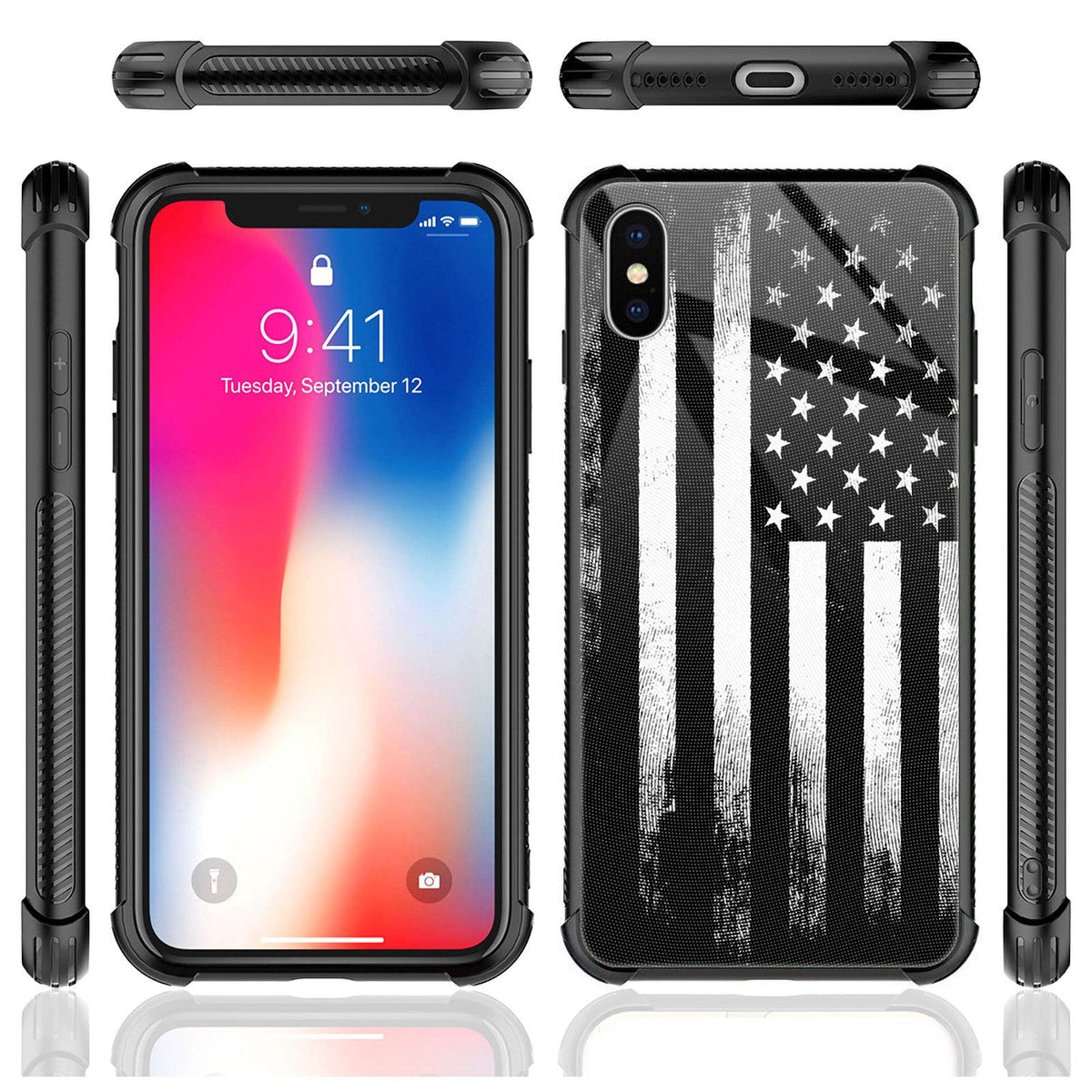 Carloca Iphone Xr Case,Retro Black White American Flag Iphone Xr Cases For Girls Boys,Graphic Design Shockproof Anti Scratch Dro