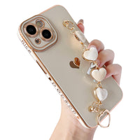 Caseative Cute Plating Love Heart Wrist Strap Chain Bracelet Soft Compatible With Iphone Case For Women Girls (White,Iphone Xs M