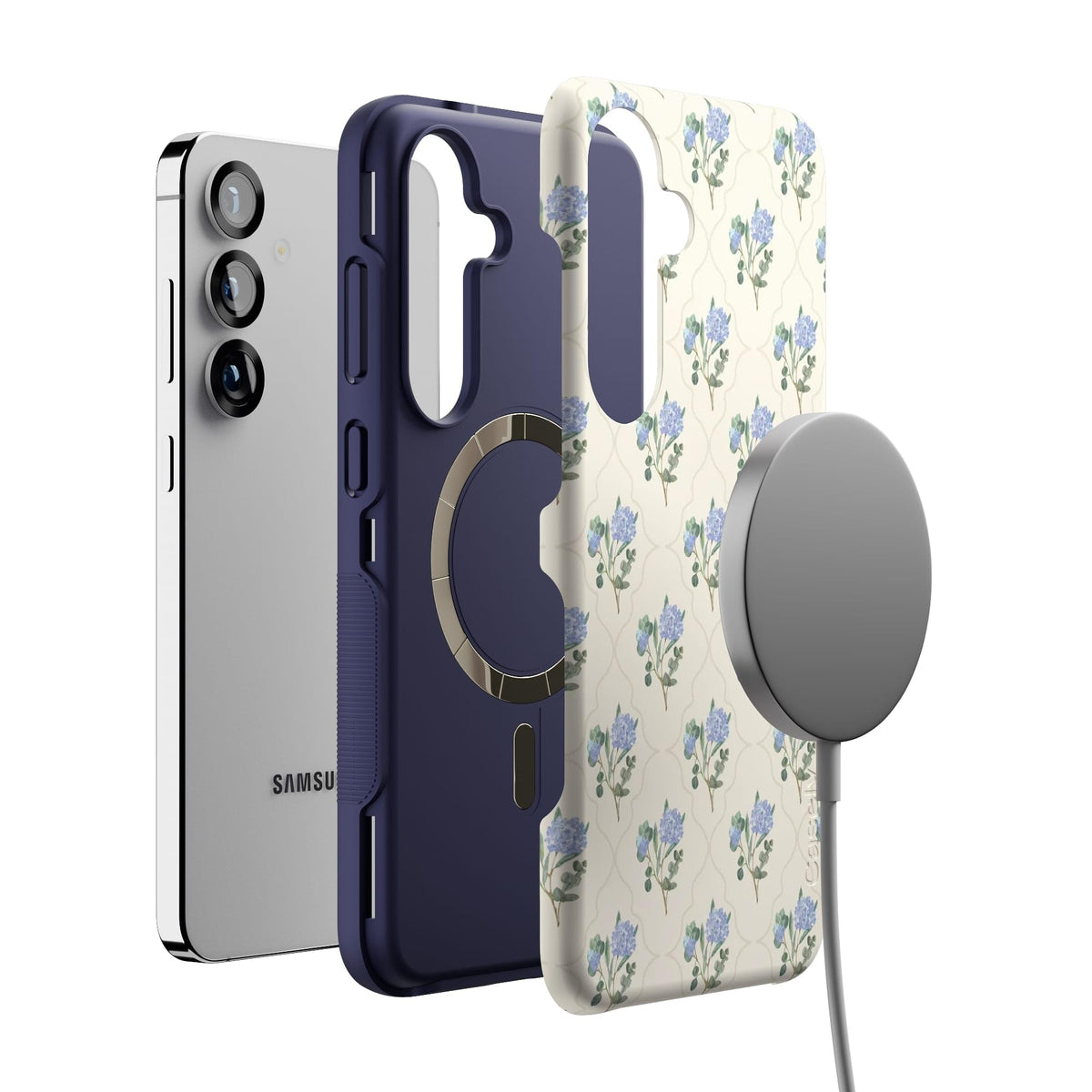 Casely Galaxy S25 Plus Case | Vintage Garden | Blue Hydrangea | Bold Protective Design | Compatible With Magsafe