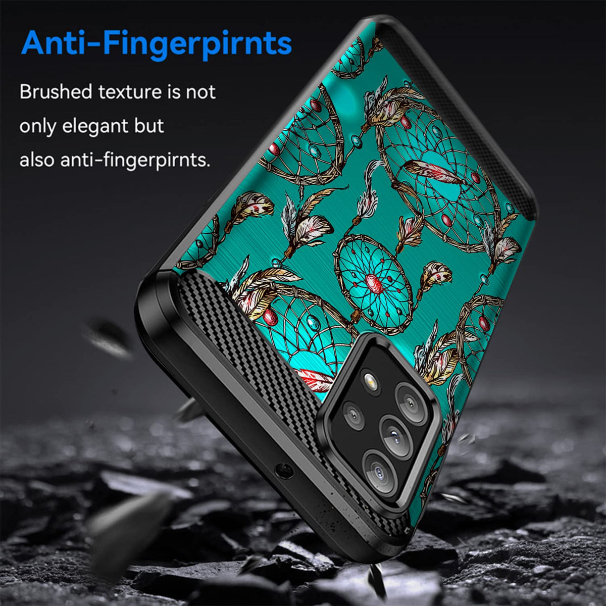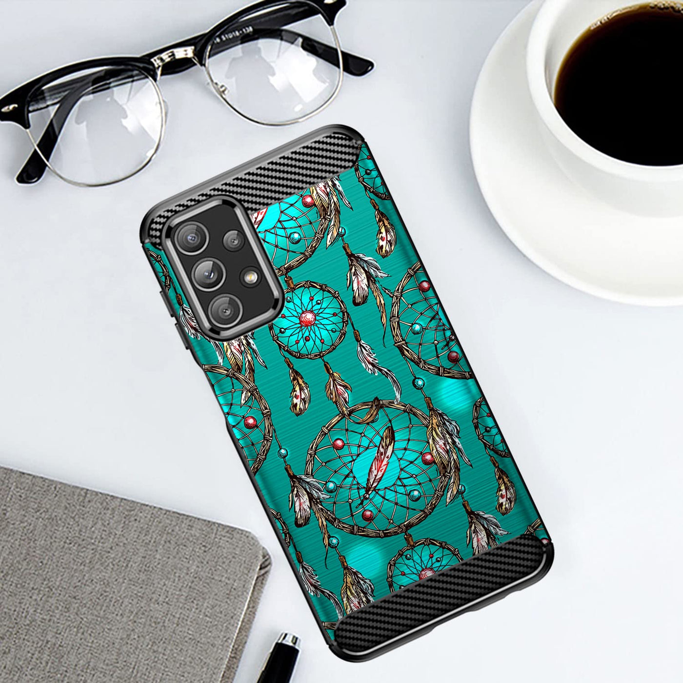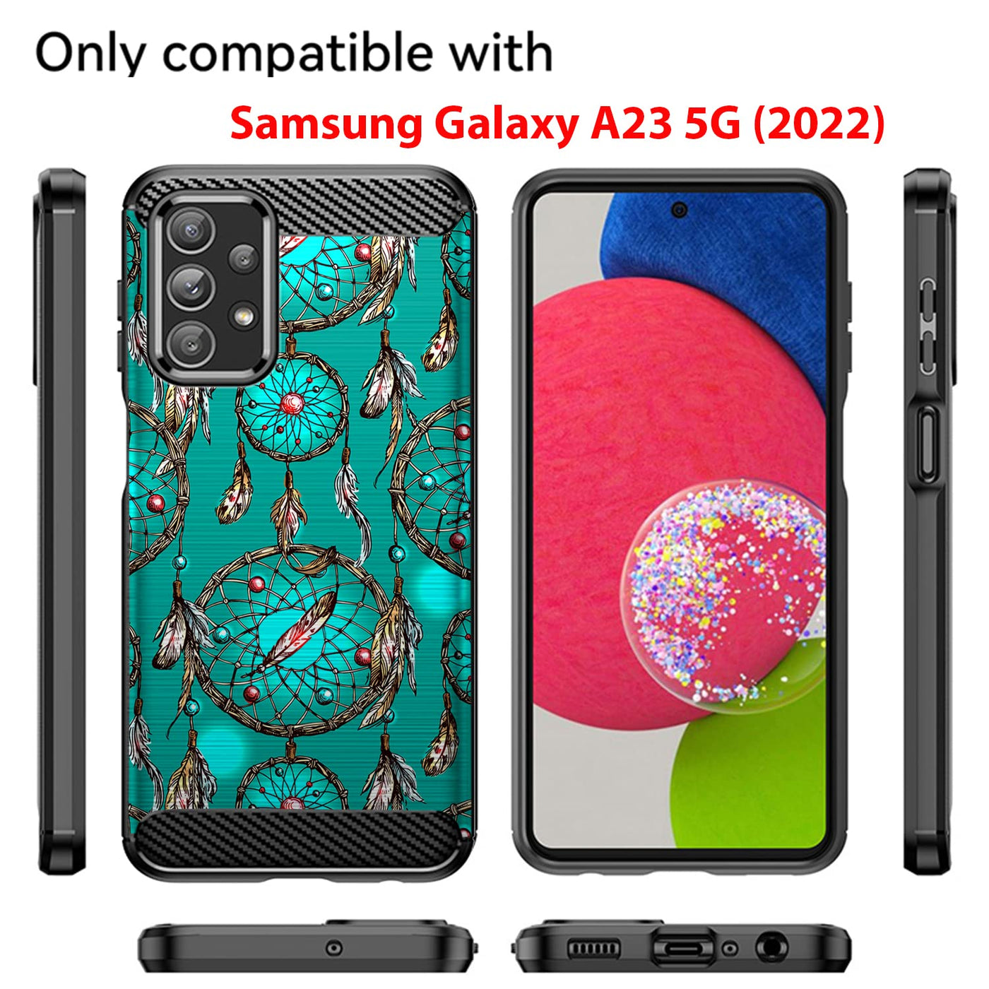Casesondeck Case Compatible With [Samsung Galaxy A23 5G / A23 Case] Tribal Floral Matte Tpu Flexible Carbon Fiber Textured (Teal