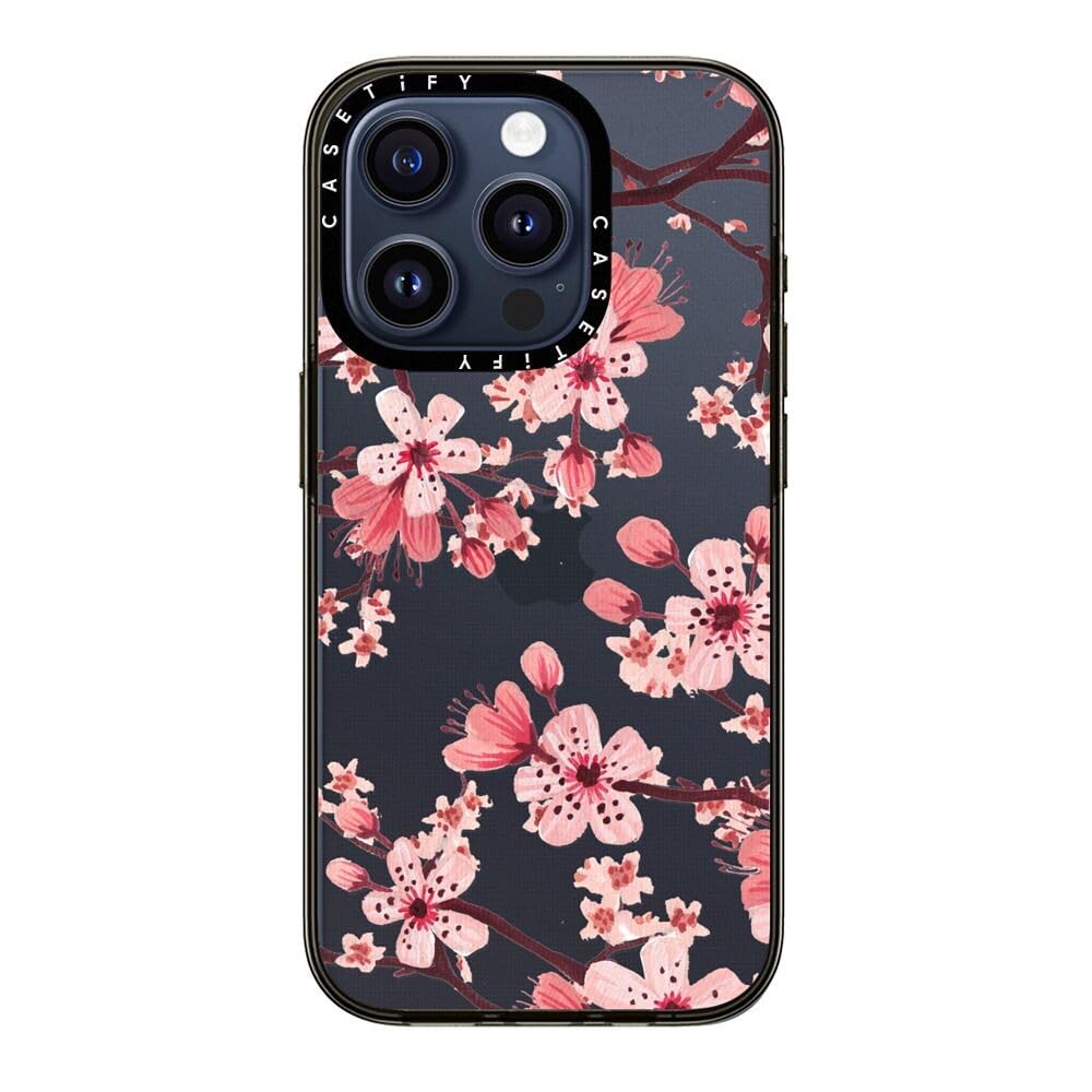 Casetify Compact Iphone 15 Pro Case [2X Military Grade Drop Tested / 4Ft Drop Protection] Watercolor Blossom Clear Black