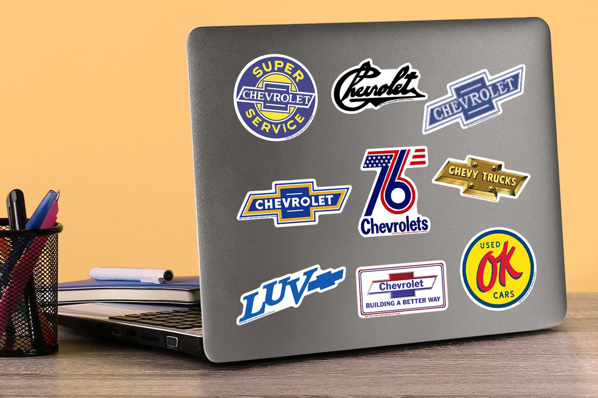 Chevrolet Branding 50Ct Vinyl Large Deluxe Stickers Variety Pack - Laptop, Water Bottle, Scrapbooking, Tablet, Skateboard, Indoor/Outdoor