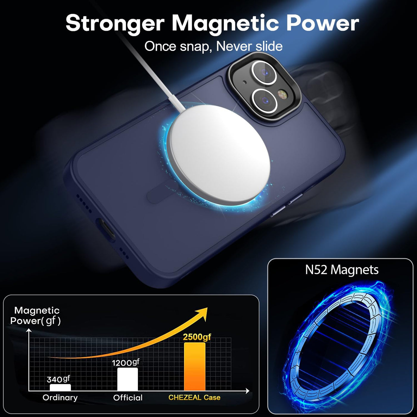 Chezeal Compatible With Iphone 14/13 Case [Compatible With Magsafe & Military Grade Protection] Slim Magnetic Translucent Matte