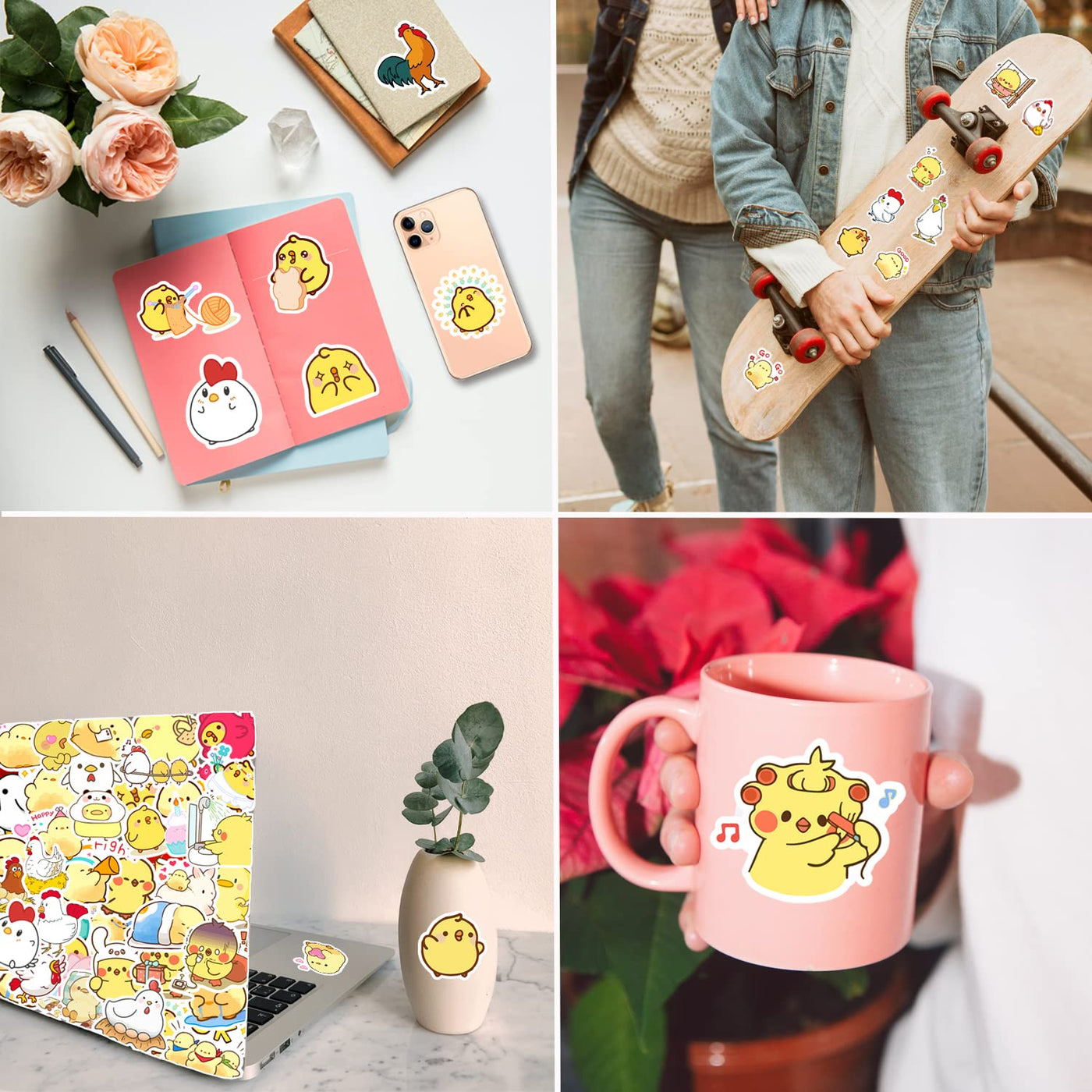 Q: What items can I use these stickers on?A: These cute yellow stickers can be applied to a variety of surfaces, including laptops, hydro flasks, skateboards, luggage, phones, and more, allowing you to personalize and decorate your belongings.
