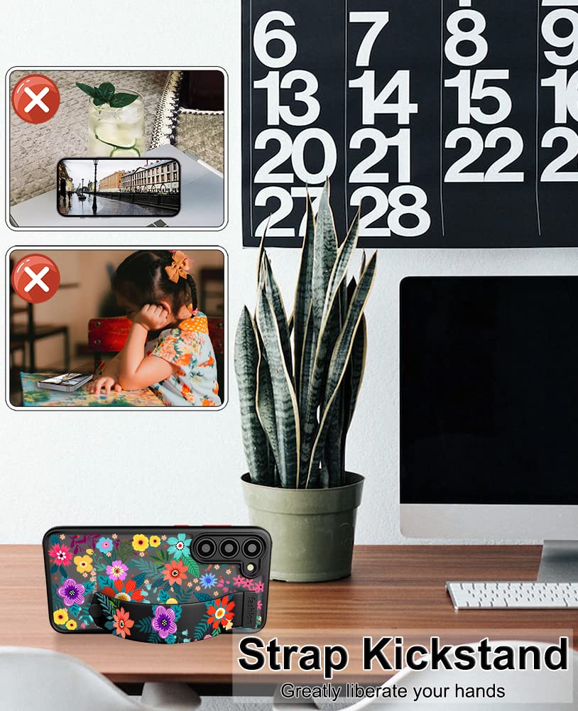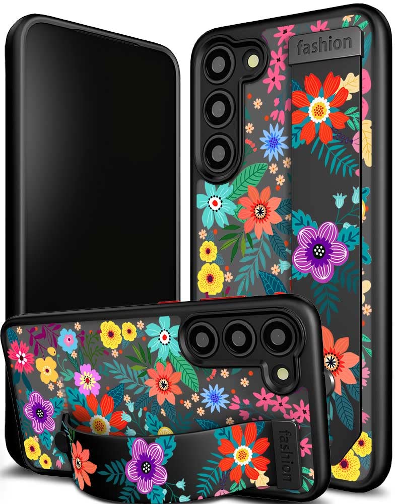 Cisland Cute Samsung Galaxy S23 Case With Strap Stand Finger Kickstand, Cute Case For Women Girly Floral For Girls Aesthetic Coo