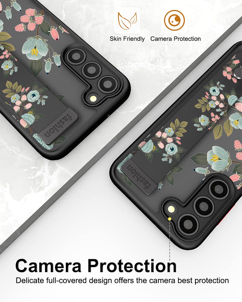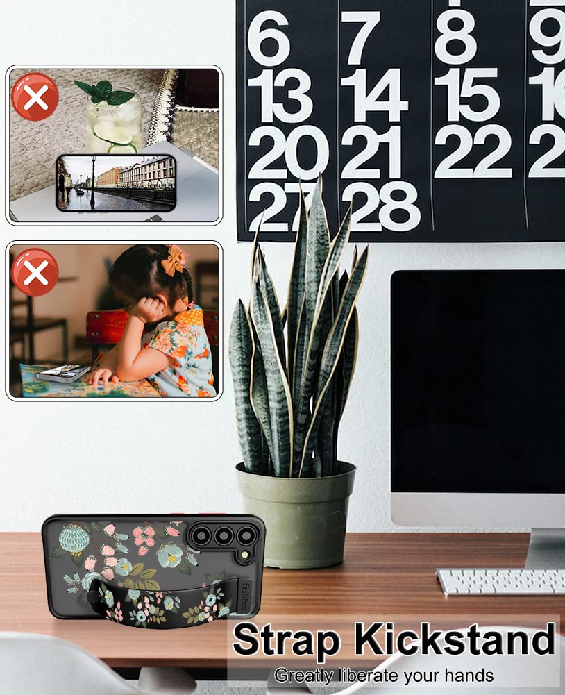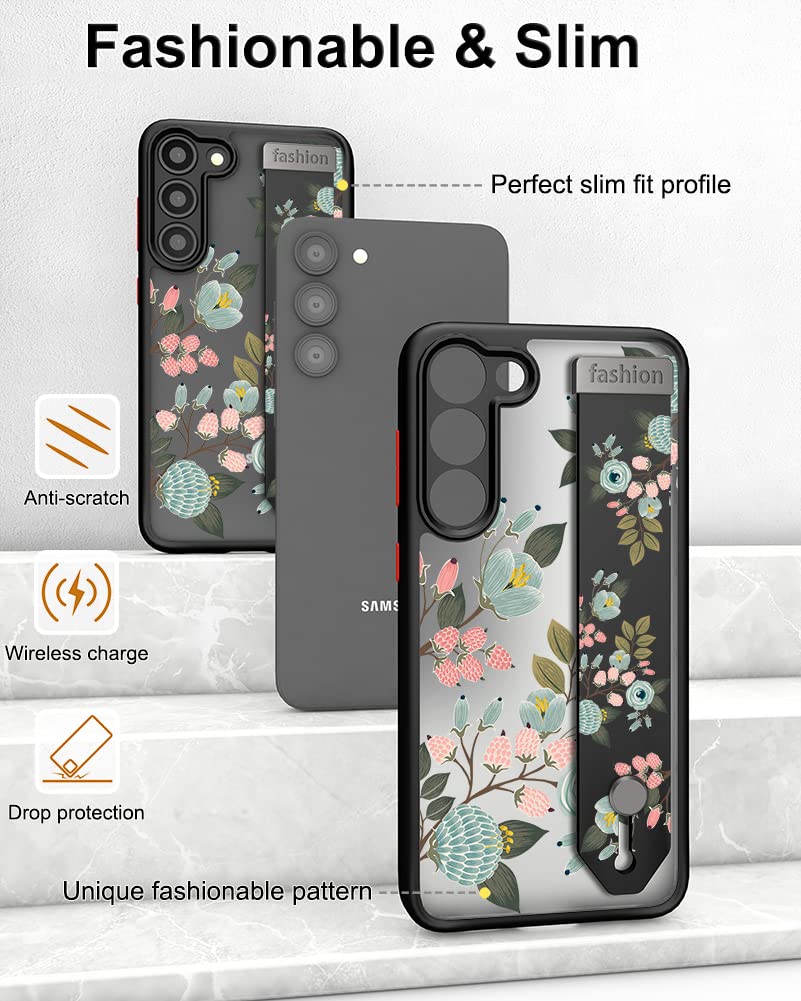 Cisland Cute Samsung Galaxy S23+ Plus Case With Strap Stand Finger Kickstand, Cute Case For Women Girly Floral Girls Aesthetic S