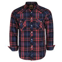Coevals Club Mens Western Cowboy Long Sleeve Pearl Snap Casual Plaid Work Shirts (Red Black 12 M)