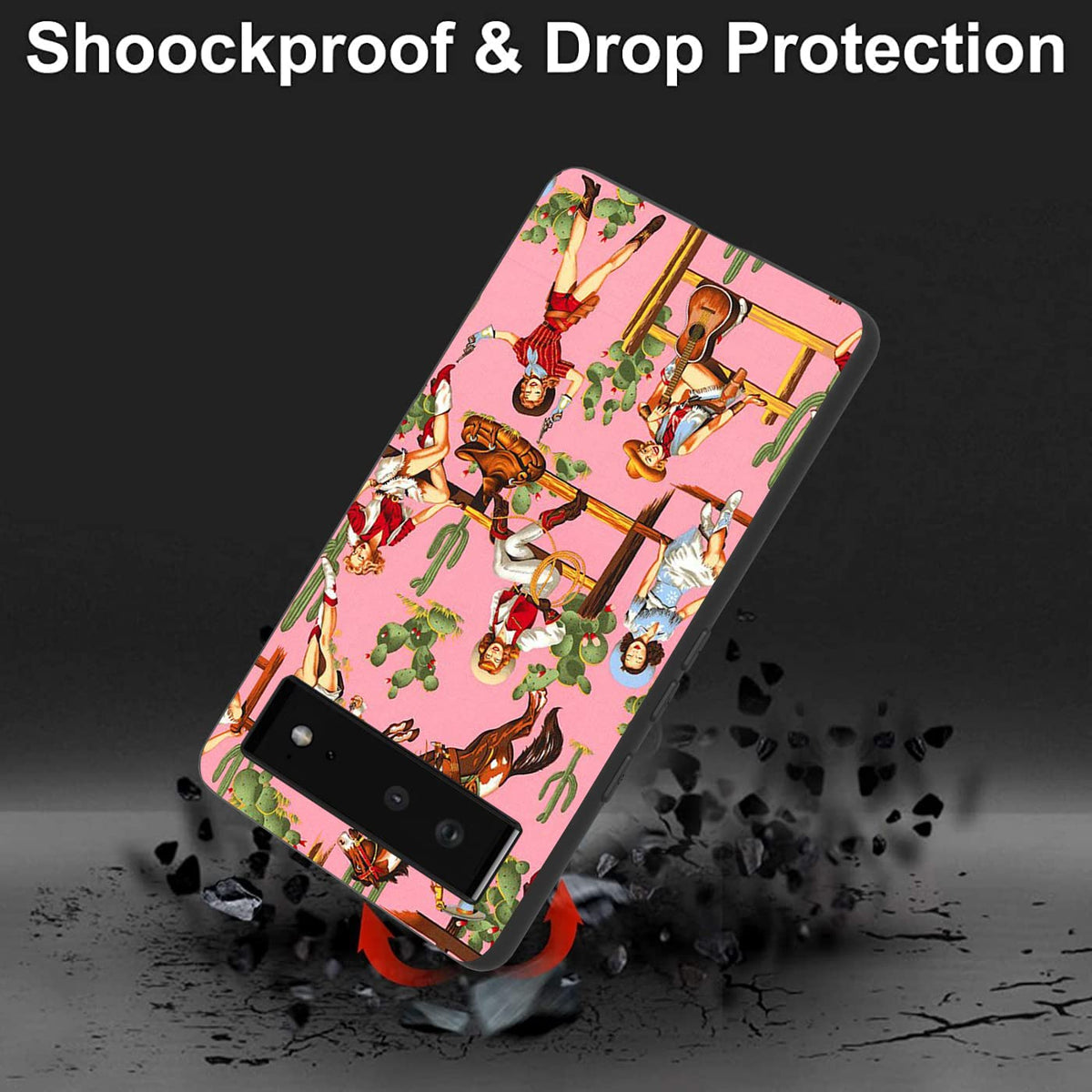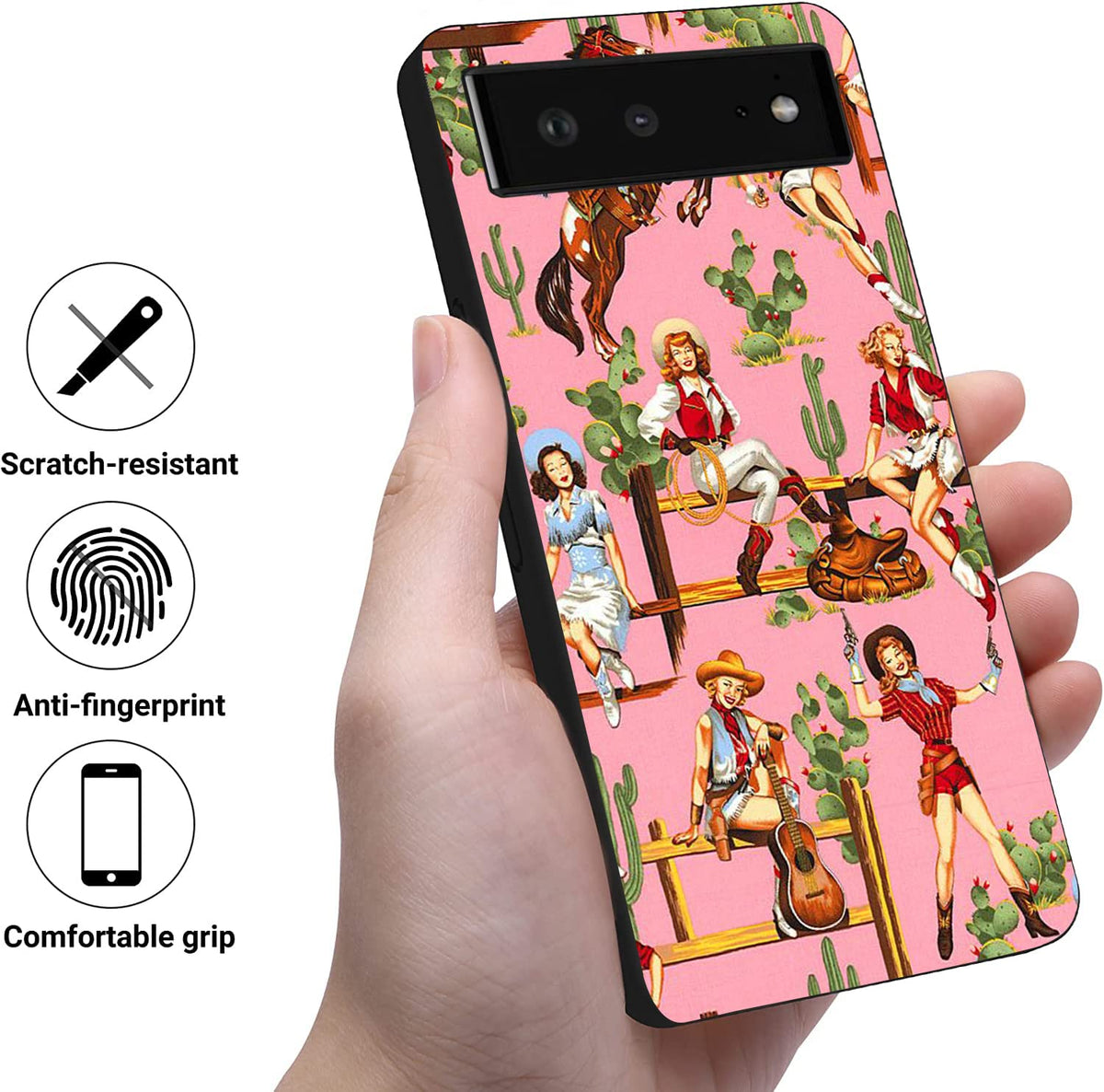 Compatible With Google Pixel 7 Case, Country Western Southwestern Cactus Retro Pink Pinup Cool Soft Tpu Fashion Cool Slim Shockp