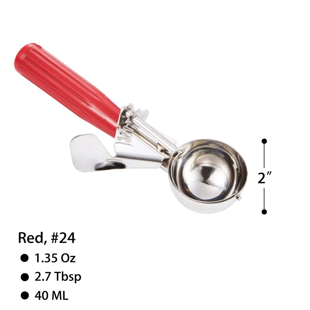 Cookie Scoop 24 (135 Oz) Disher Scoop, Portion Scoop, Food Scoop Portion Control 188 Stainless Steel, Red Handle