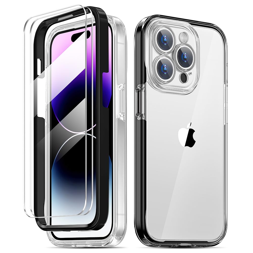 Coolqo Compatible For Iphone 14 Pro Max Case, With 9H Tempered Glass Screen Protector [Anti Yellowing] Military Grade Protection