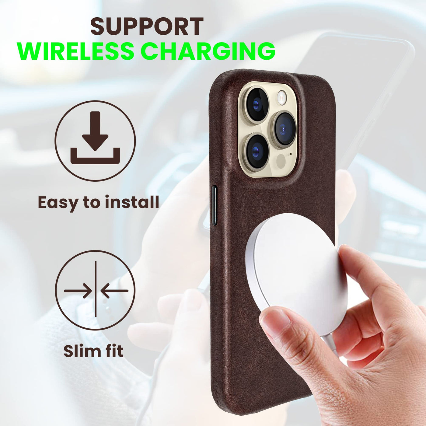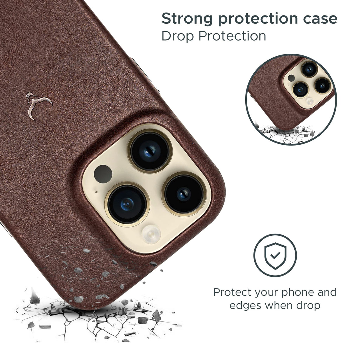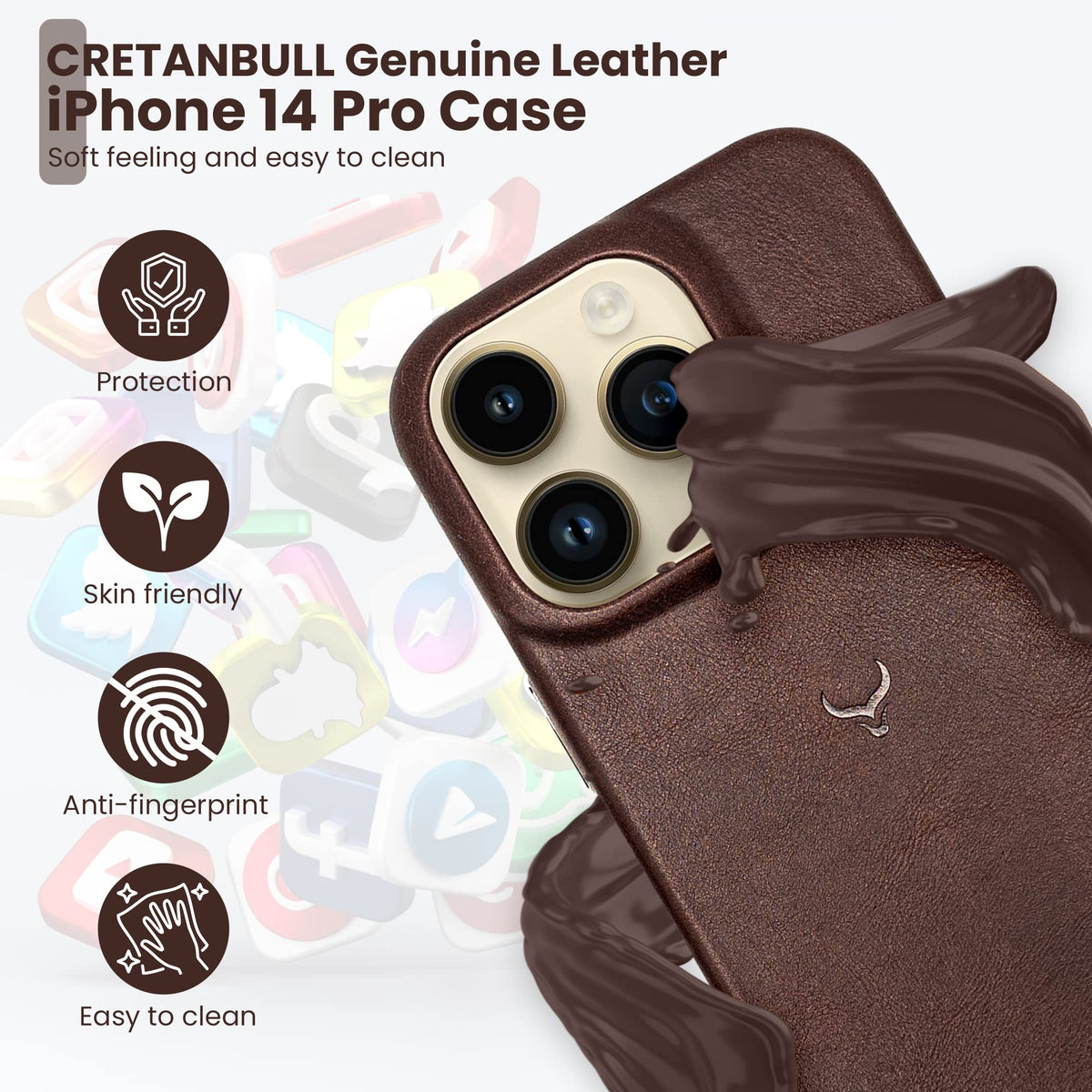Cretanbull Genuine Leather Iphone 14 Pro Case Compatible With Magsafe Oil Waxed Full Grain Anti Scratch Leather Case Shock