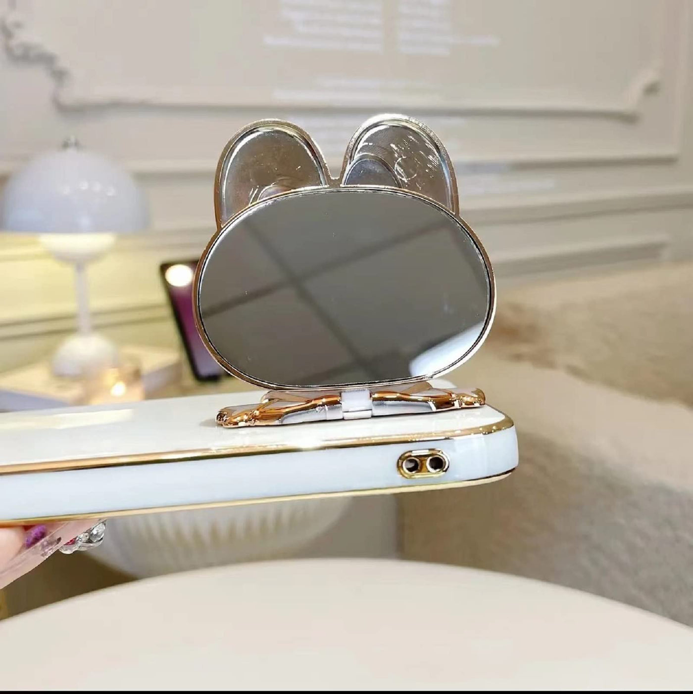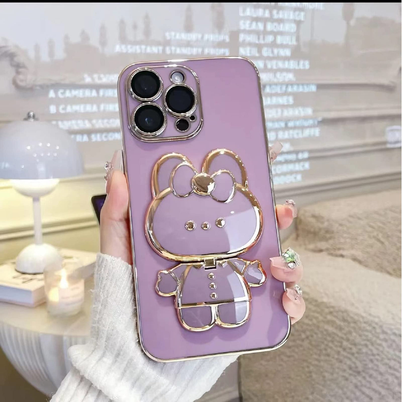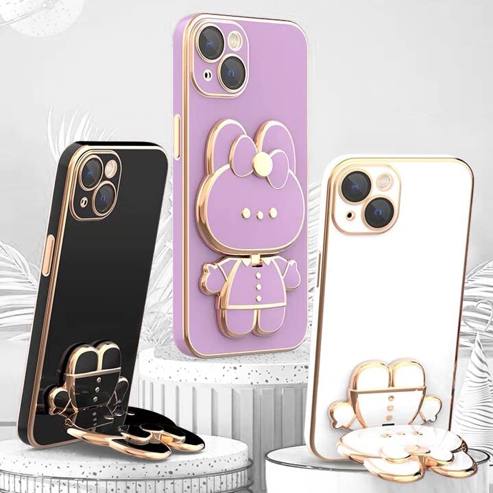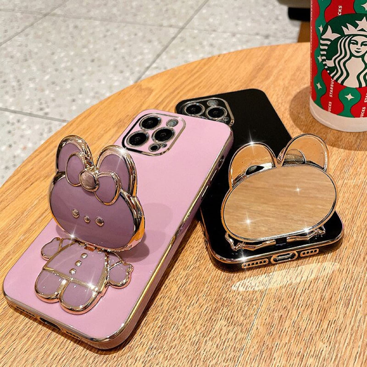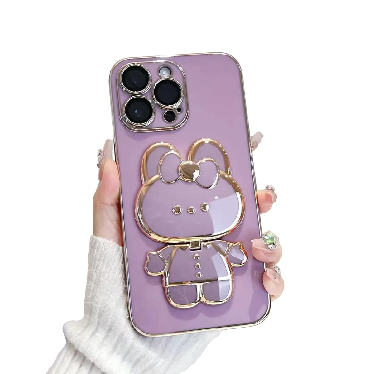 Cute Bunny Hidden Stand Iphone 14 Pro Case, Soft Tpu Bumper Shockproof 3D Mirror Rabbit Bracket Phone Case With Camera Protectio