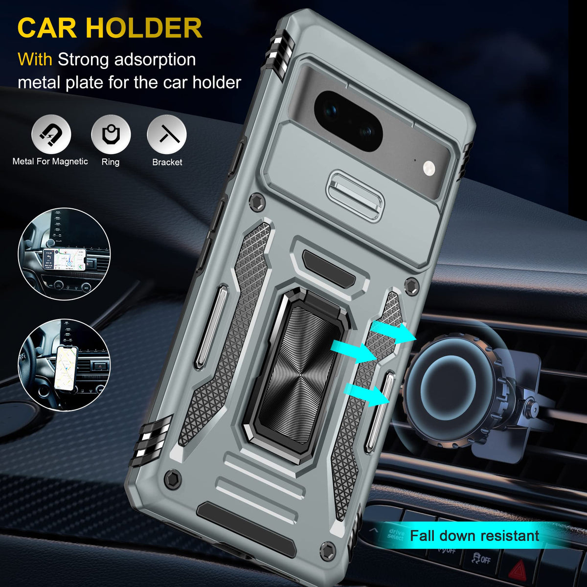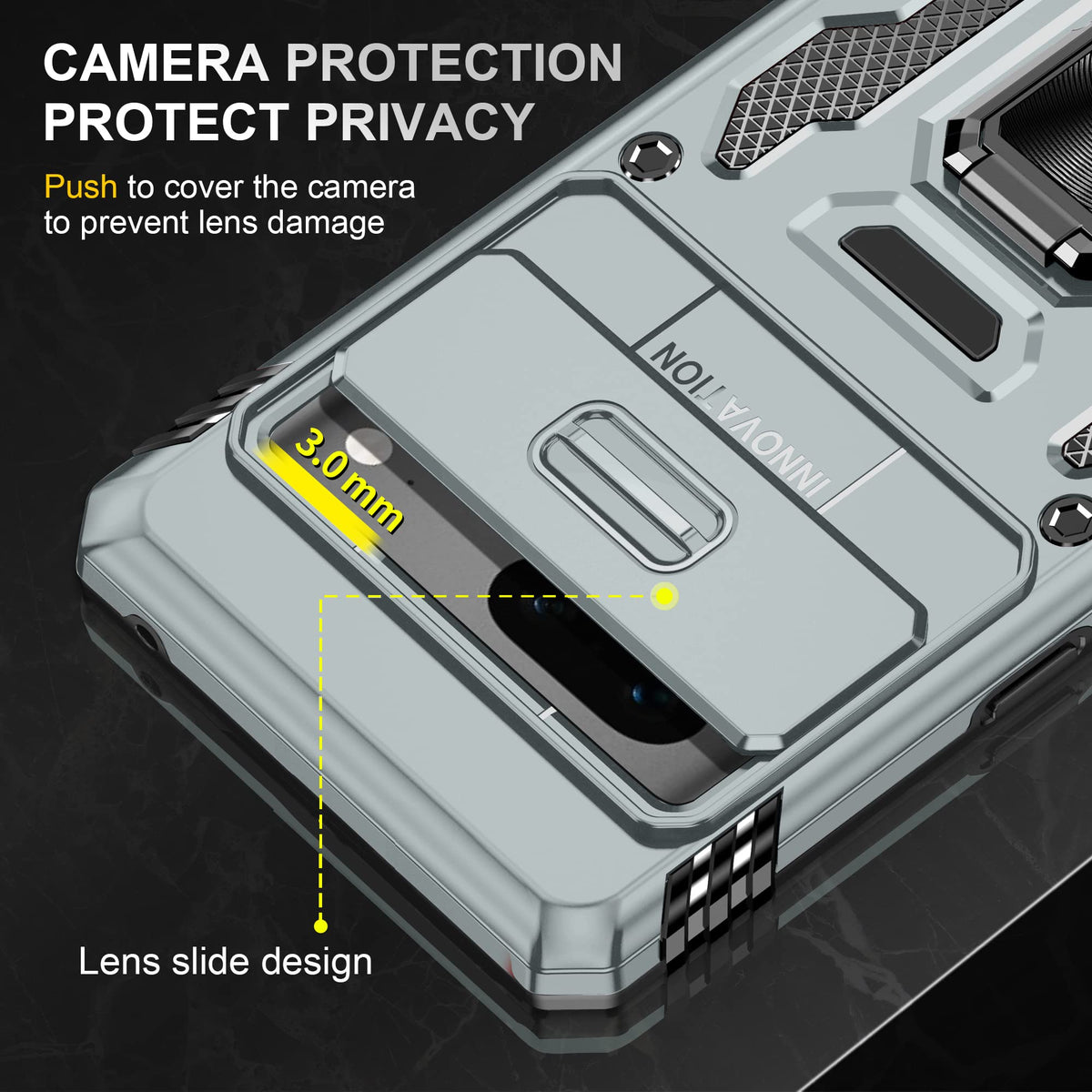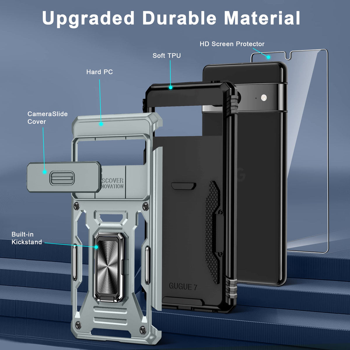 Package Including: 1 X Case, 1 X Screen Protector, 1 X Cleaning Kit Feature: 1.The Phone Case Is The Unique Option For You.Certified By The Military Standard,Survived Over 8,000 Drop Tests 2.Sliding Camera Cover Also Can Protect The Lens,For Pixel 7 Case With There Are Two Stainless Steel Protection Bars On The Back To Prevent Phone Case From Outside Damage And Resulting In Paint Peeling 3.This Case With The Sliding Camera Cover, It Will Combine To Give You Comprehensive Protection For Your Expensive Device