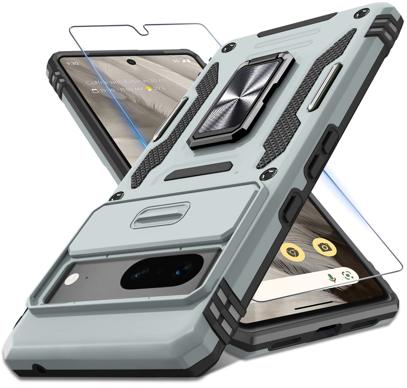 Deerlamn Case For Google Pixel 7 With Slide Camera Cover+Screen Protector(1 Pack), Rotated Ring Kickstand Military Grade Shockpr