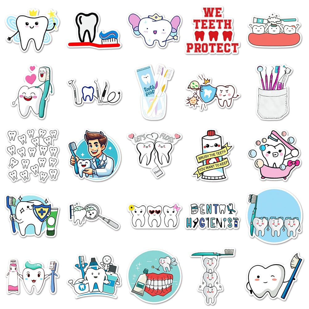 Dental Health Stickers |50Pcs Teeth Protect Waterproof Vinyl Decals For Bike Water Bottles Laptop Bicycle Refrigerator Cup Lugga