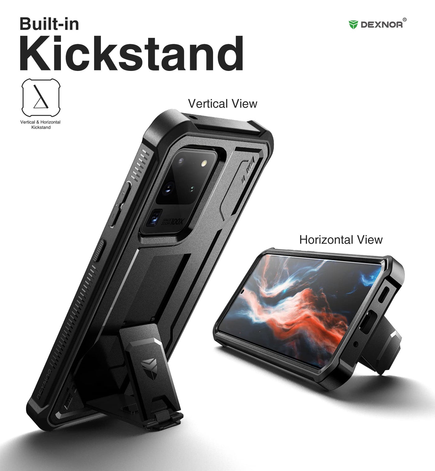 Q: What kind of protection does the Dexnor case provide?A: The Dexnor Full Body Case offers military-grade protection with a dual-layer design that combines a hard polycarbonate shell and a shockproof TPU bumper. It effectively absorbs shock from drops and falls, ensuring your Galaxy S20 Ultra is well-protected.