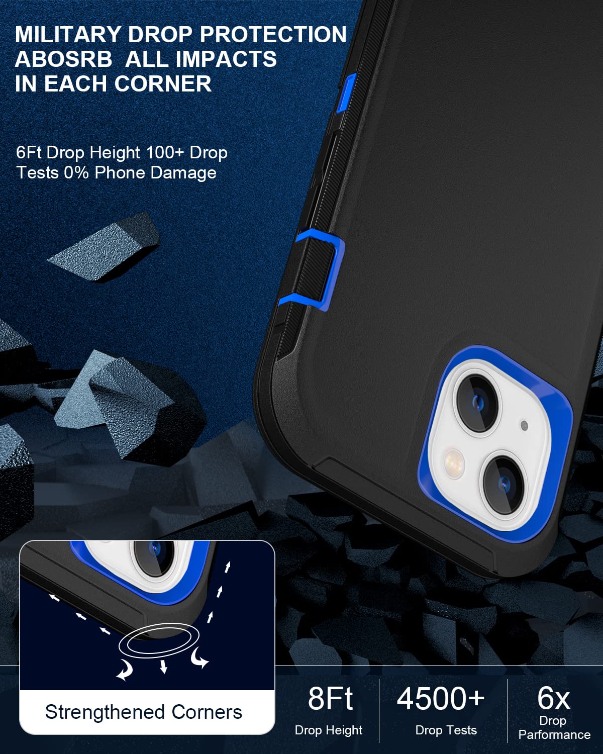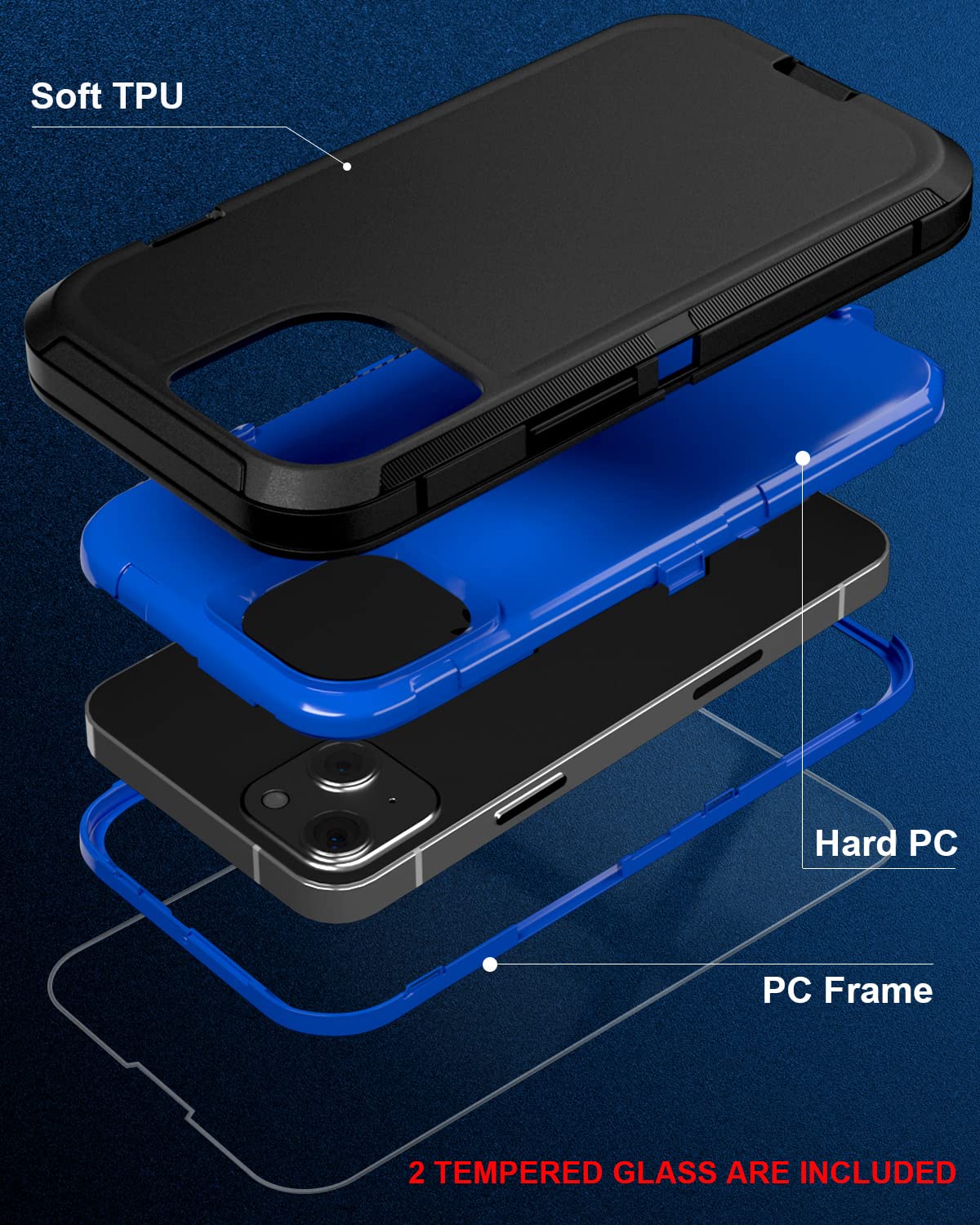 Dhcall For Iphone 13 Case (6.1''), With 2 Tempered Glass Screen Protector [Heavy Duty Military Grade Full Body Drop Protection]