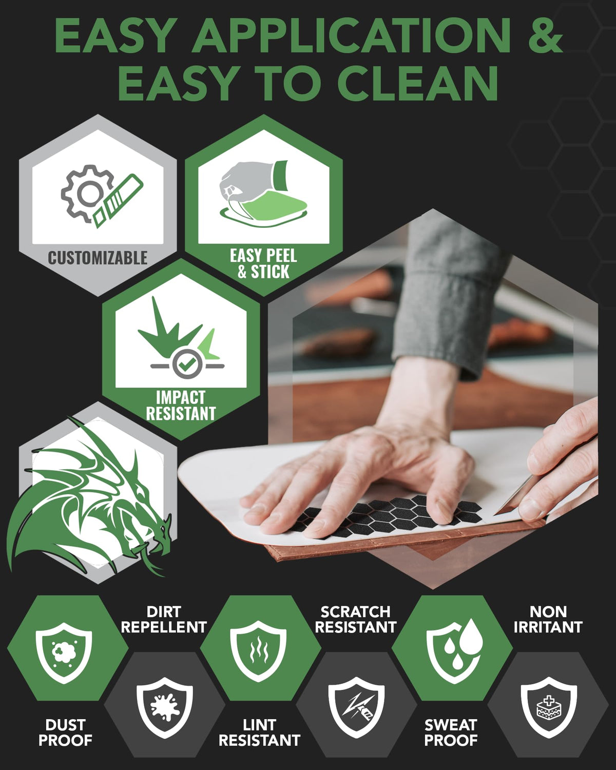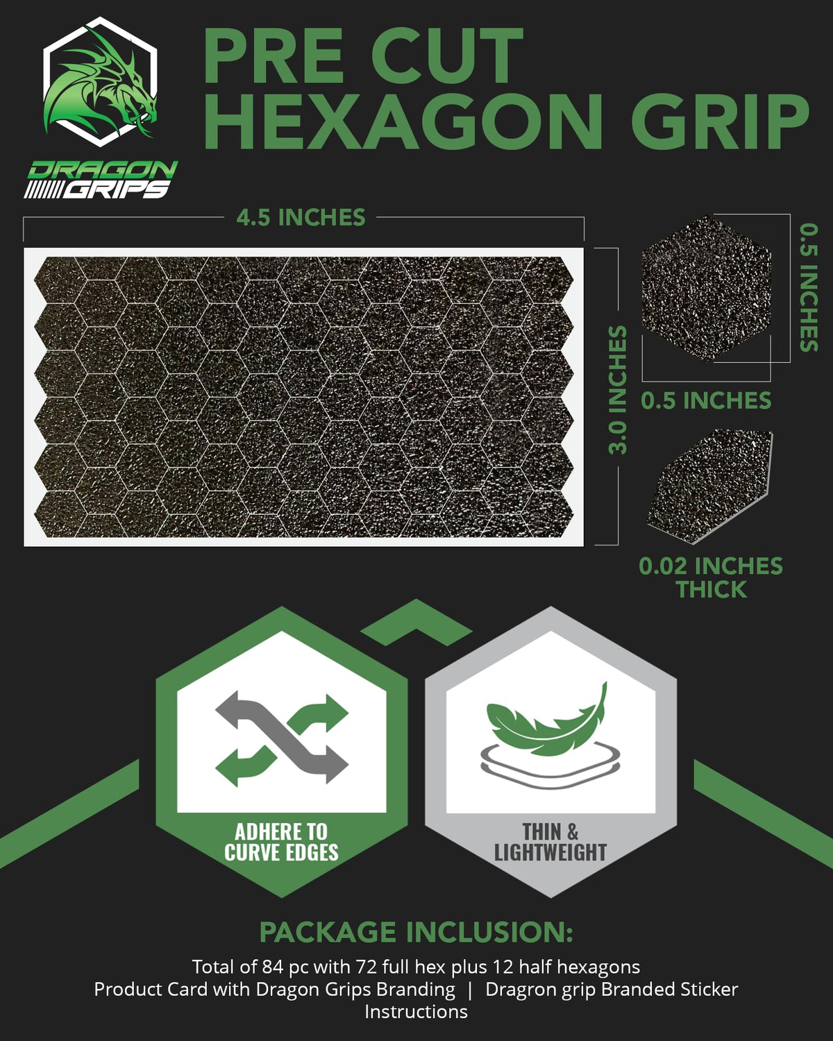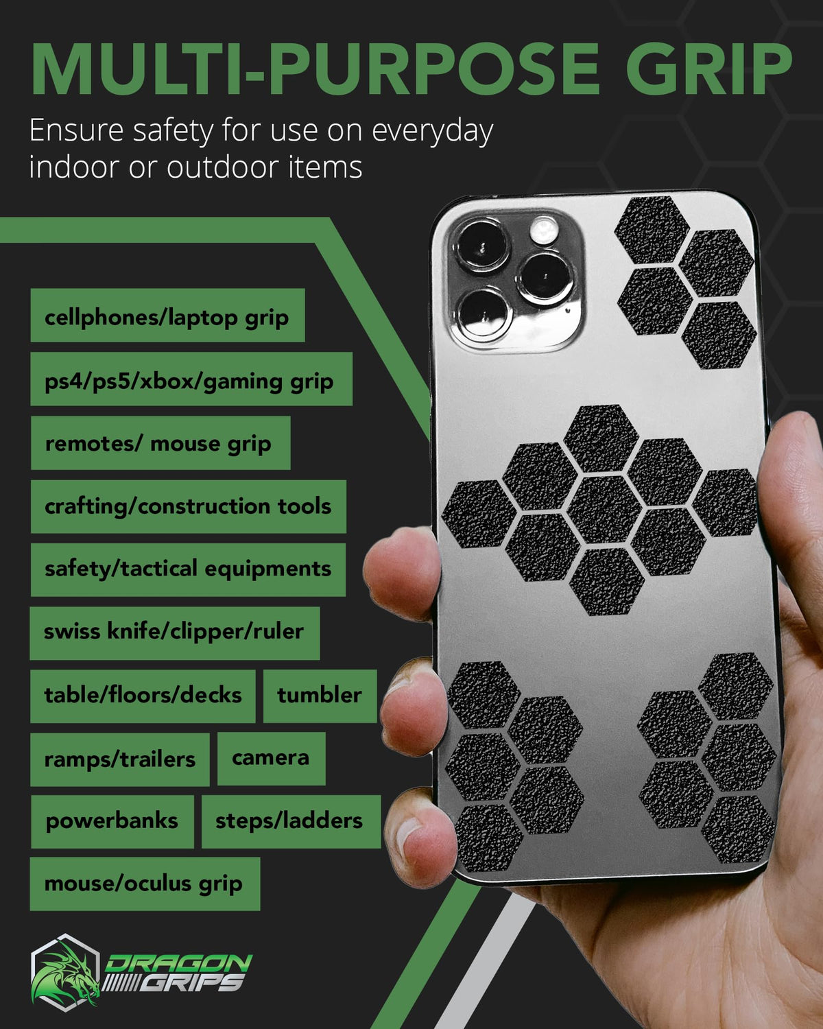 Dragon Grips Cell Phone Grip Tape Hexagon Stickers Textured Rubber Grip Tape, Multi-Purpose Self-Adhesive Acrylic Waterproof Grip Tape For Mouse, Laptop, Ipad, Iphone, Tablets &Amp; Gaming Self-Adhesive Phone Grip Tape Product Features: Pre Cut Hexagon Shapes 0.5Mm Thick/Thin Anti-Slip Waterproof Pvc Synthetic Rubber Pressure Sensitive&Nbsp;Acrylic Adhesive Computer Designed And Precision Cut Made In The Usa Package Includes: Total Of 84 Pcs&Nbsp; 72 Pcs Full Hexagons 12 Pcs Half Hexagons 1 Sheet (4.5&Rdquo; X 3.0&Rdquo;) Size Of Each Hexagon (0.5&Rdquo; X 0.5&Rdquo;) Product Card With Dragon Grips Branding On Front Dragon Grips Branded Sticker Instructions