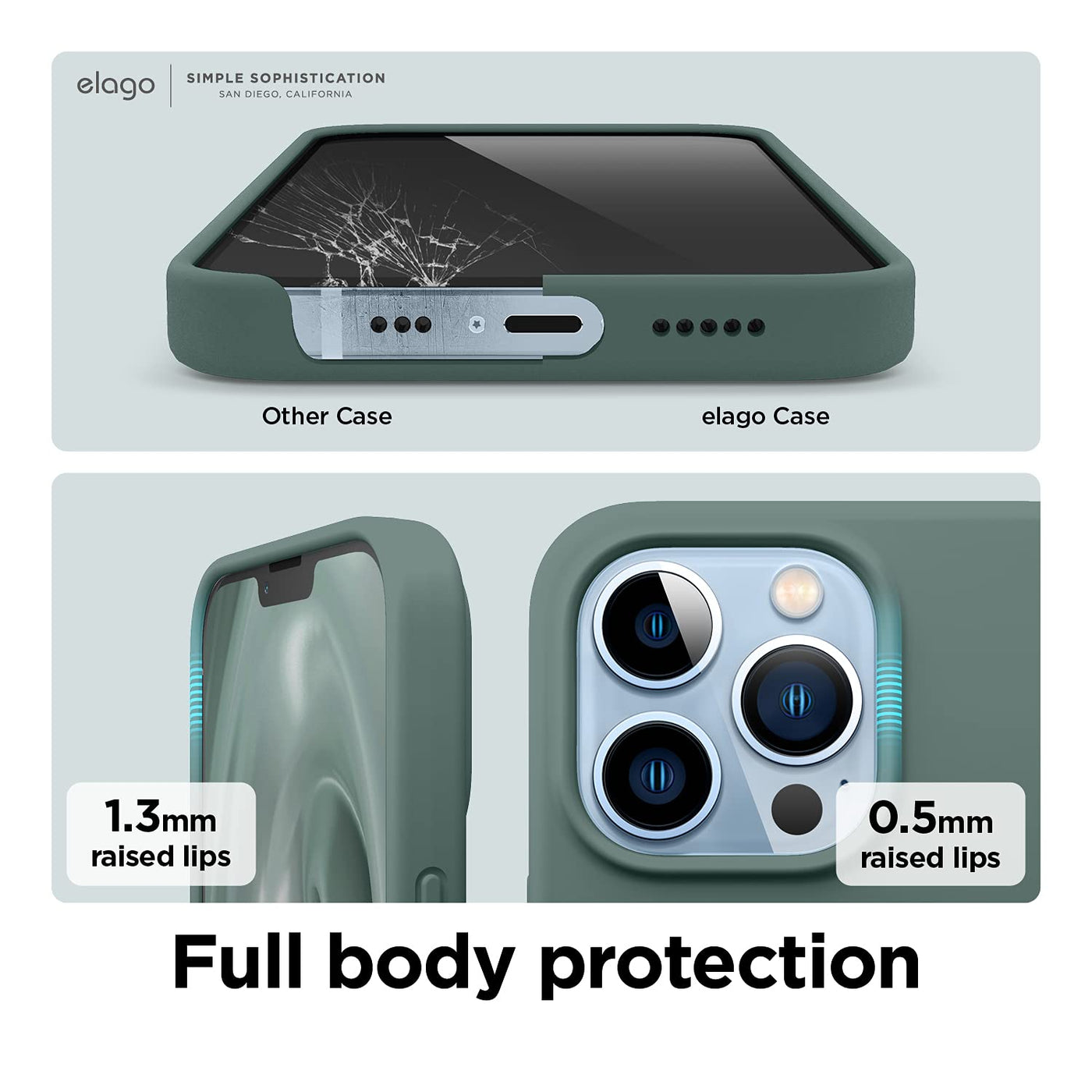 Q: How does the raised lip design benefit the phone?A: The raised lip design of the elago Liquid Silicone Case helps protect the screen and camera from scratches by creating a barrier against direct surface contact.