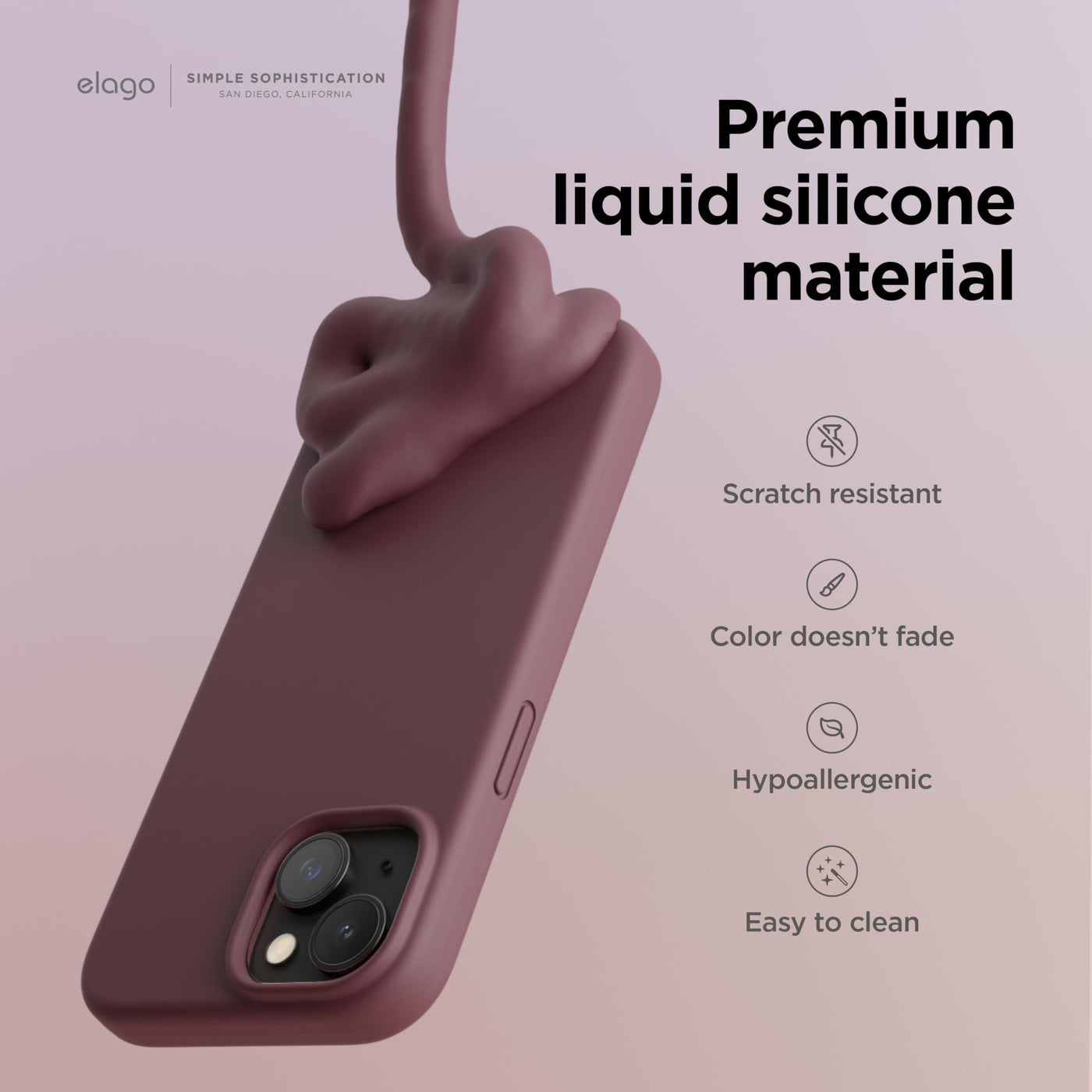 Q: What materials are used in the elago Liquid Silicone Case?A: The case is made from high-quality liquid silicone, polycarbonate, and features a soft microfiber lining that helps prevent scratches.