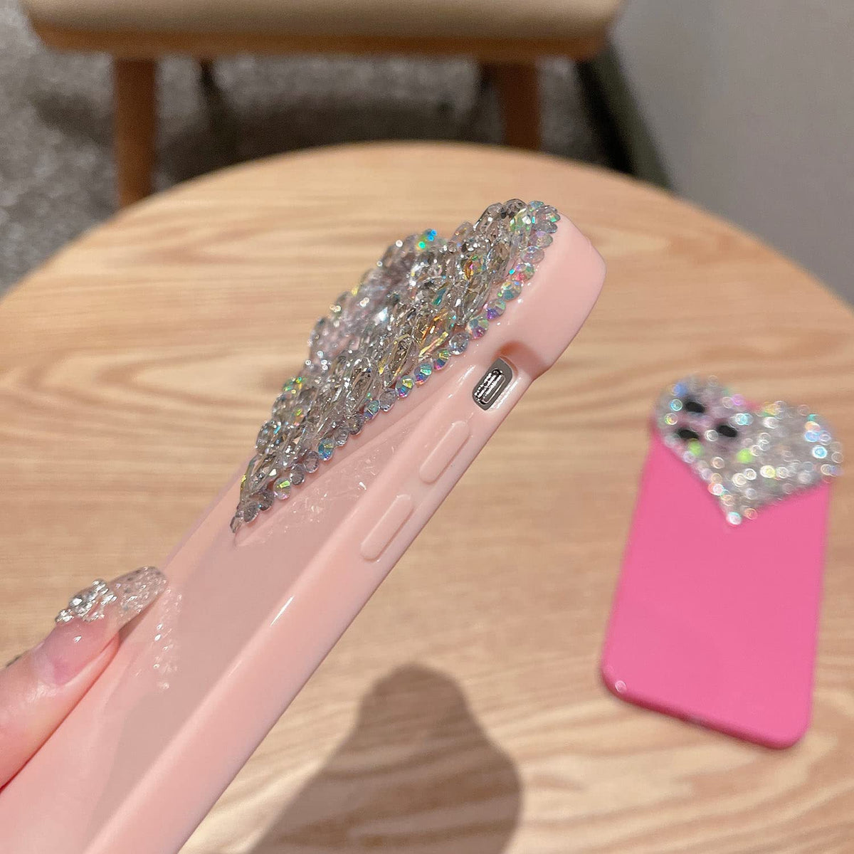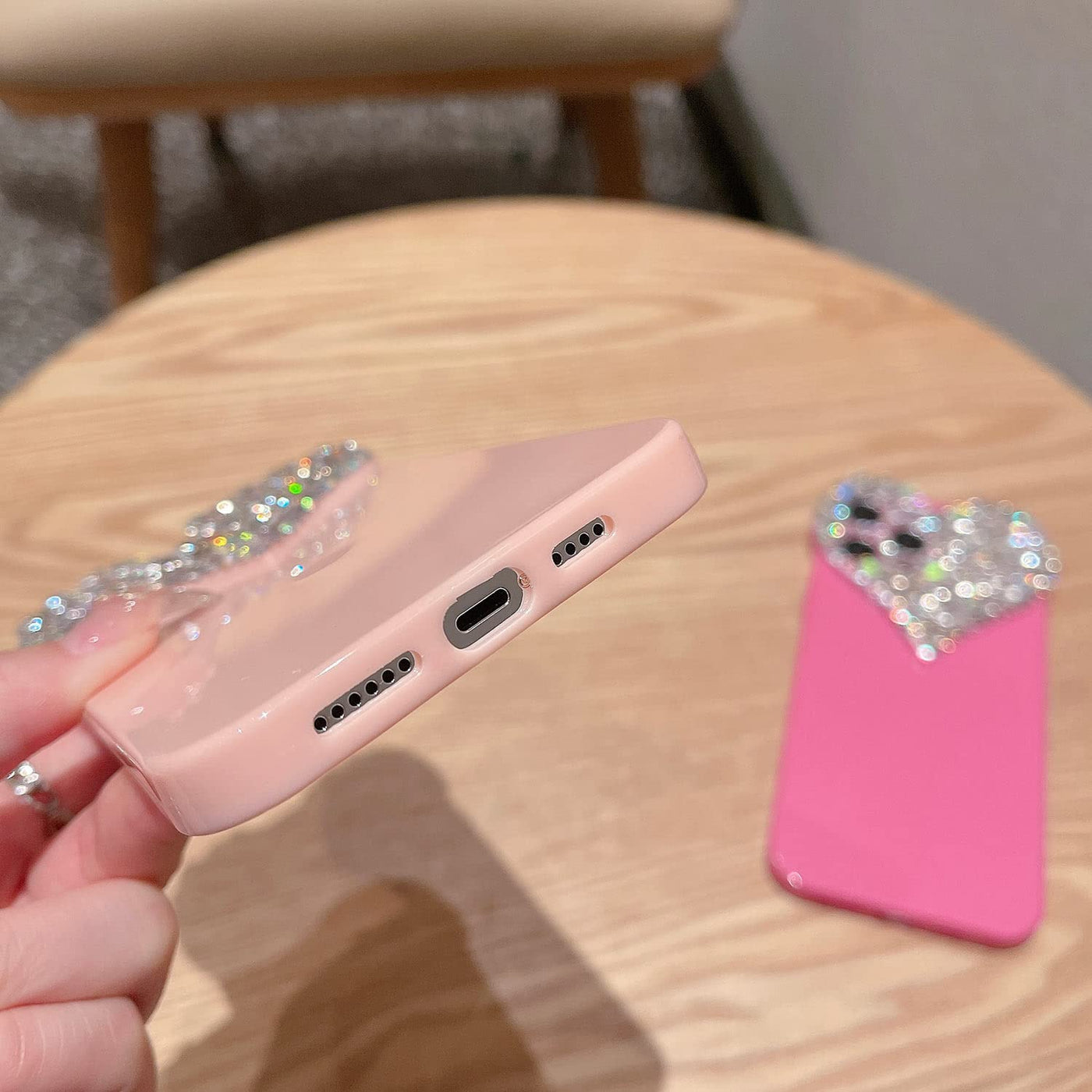 Enytdmo Cute Iphone 12 Case 3D Glitter Sparkle Bling Case For Women Girls, Pretty Rhinestone Diamond Cute Aesthetic Love Heart P