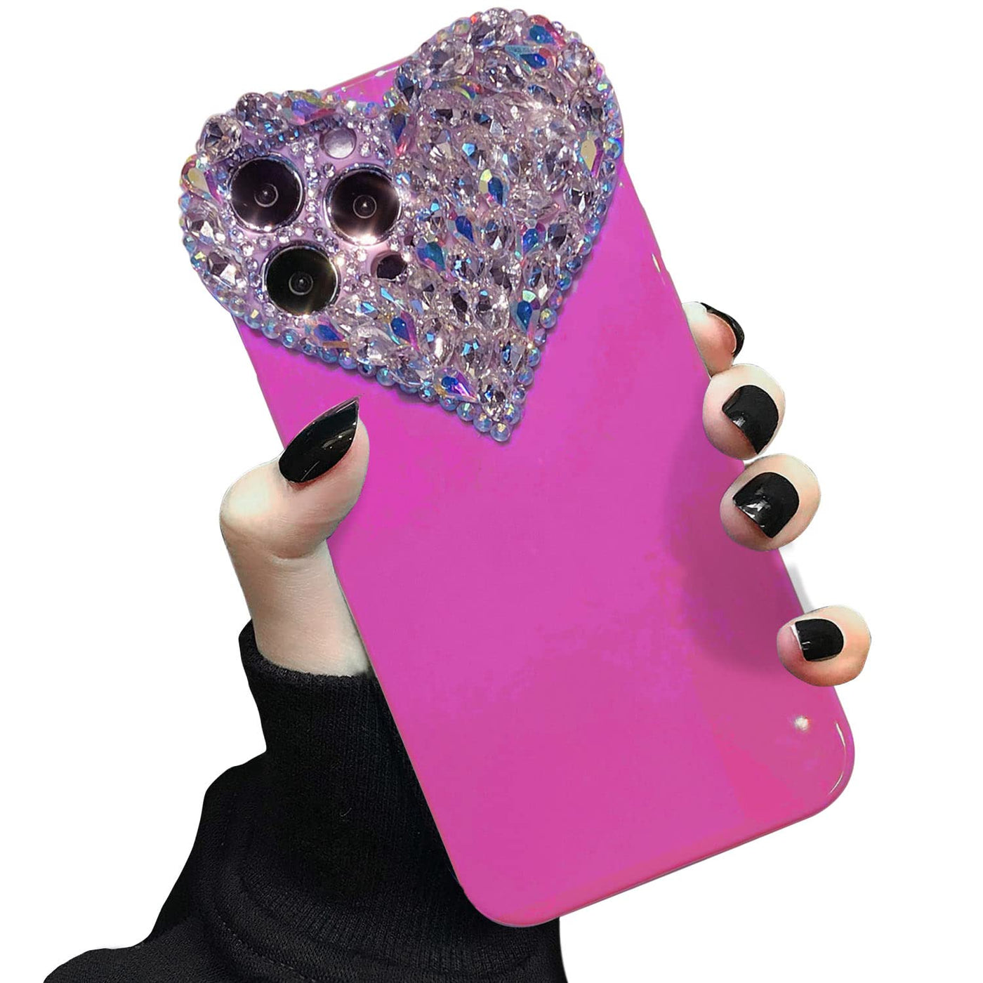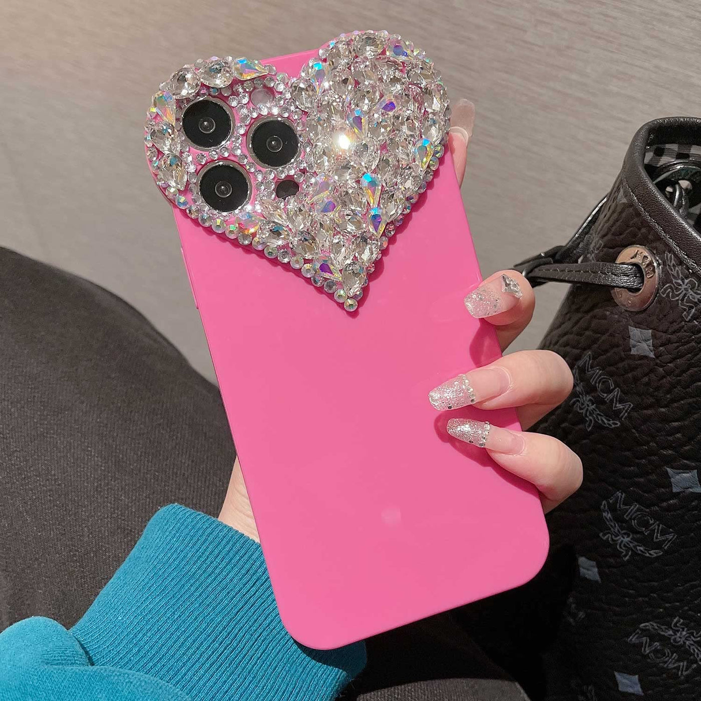 Enytdmo Iphone 12 Pro Case, 3D Glitter Heart Rhinestone Bumper, Rose, For Women Girl With Iphone 12 Pro 6.1 Inch, Durable, Camer