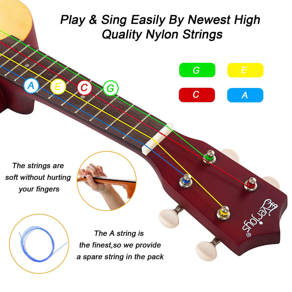 Everjoys Soprano Ukulele Beginner Pack 21 Inch W/Rainbow String Free Online Lesson Gig Bag Fast Learn Songbook Digital Tuner Pic