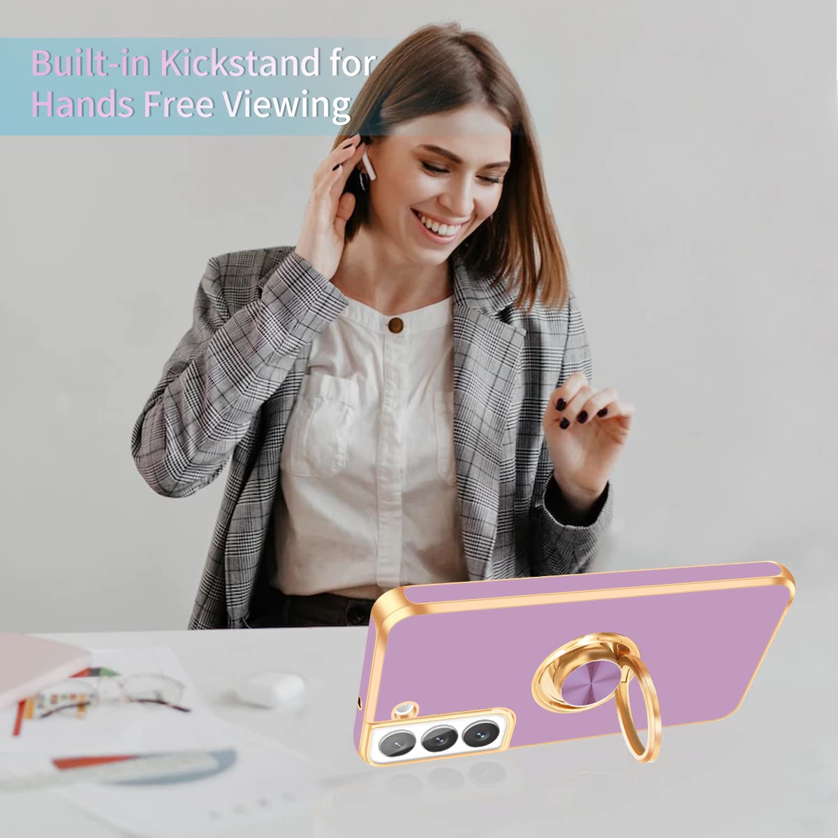 Fingic Samsung Galaxy S22 Case With 360 Ring Holder, Shockproof Slim Kickstand Magnetic Support Car Mount Protective Phone Case For Girls Womenspecifications:1. Compatible Model: For Samsung Galaxy S22 6.1 Inch (2022 Released)2. Color: Purple Package Includes:1X Case For Samsung Galaxy S22 Key Features:1. Fingic Hybrid Case Provides Shock Absorption And Scratch Prevention While Maintaining A Slim Profile.2. Built-In A Ring Kickstand, Which Can Rotate 360 Horizontally And 180 Vertically.3. Metal Plate On The Ring Back Can Attach To Magnetic Car Mount For Navigation When Driving. Not Compatible With Wireless Charging.4. This Case Made With Soft Tpu Material, With Gold Plated Edges, Has A Beautiful Appearance And Comfortable Hands Feeling.5. Interior A Soft Felt Lining Further Protects The Screen From Scratches Or Abrasions.6. Raised Lip Protects The Front Screen And The Back Camera Lens From Shockproof And Drop Protection.7. Precise Cutouts Make All Buttons, Speakers And Charging Ports Easily Accessible. Questions & Answers:1.Does This Case Have A Built In Screen Protector ?Not Including A Screen Protector.2. Does This Case Fit For Samsung Galaxy S22+/S22 Plus?Not Fit For.3. Does This Case Fit For Samsung Galaxy S22 Ultra?Not Fit For.