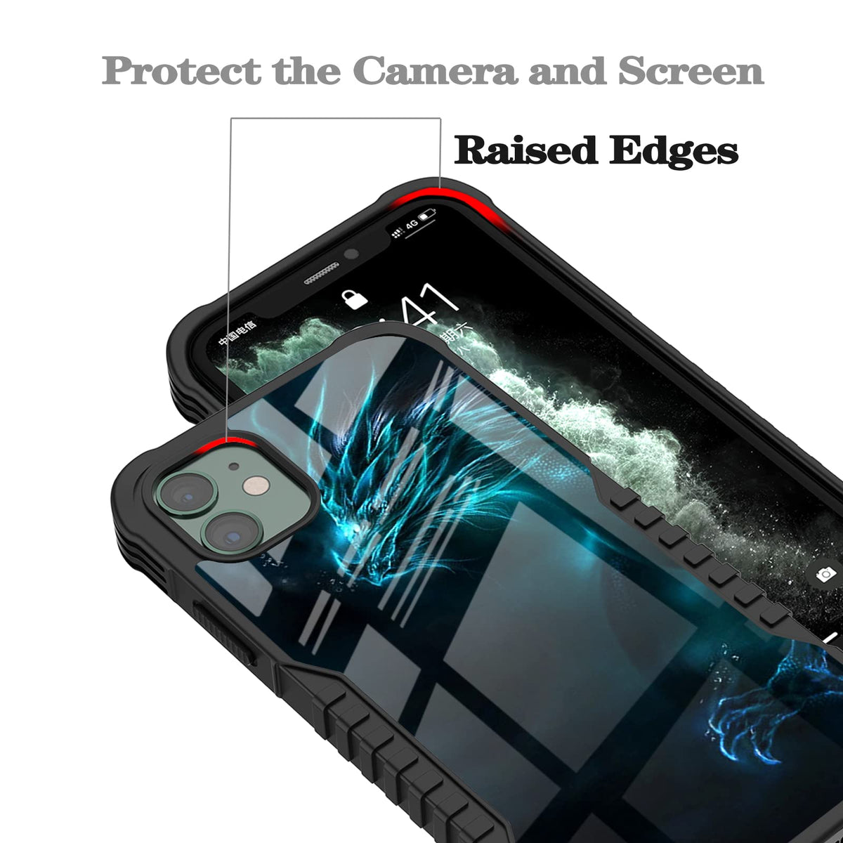 Fjyuanqi Iphone 12/12 Pro Case For Men Boys, Cool Blue Dragon Design With Anti Slip Shockproof Bumper, Pc Backplane Protection+S