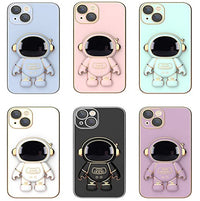 Fmuxqje 6D Plating Astronaut Hidden Stand Case Compatible With Iphone 14/14 Plus/14 Pro Max, Stereo Astronaut Case Cover Black F