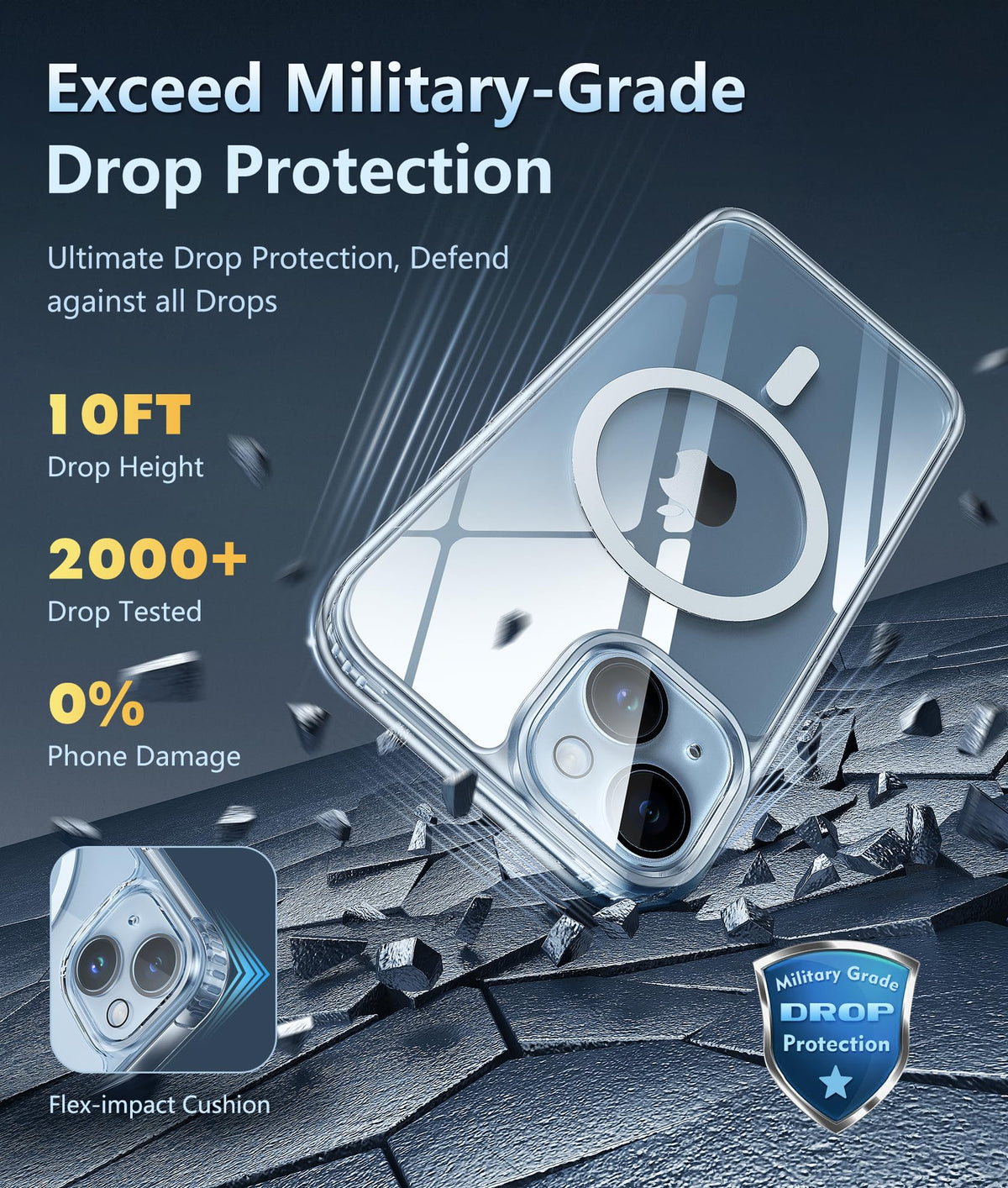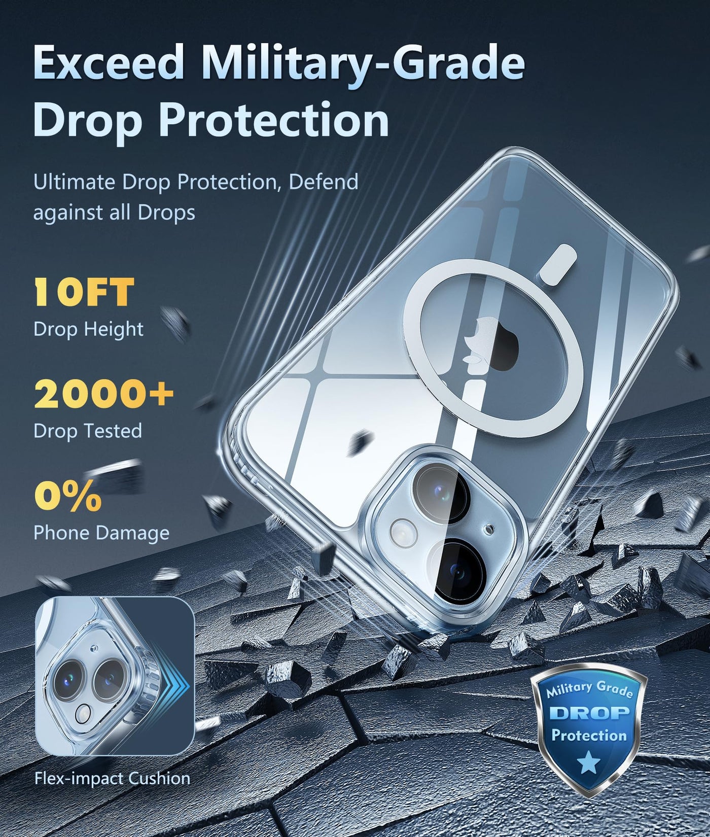 Fntcase For Iphone 15 Plus Phone Case: Clear Case Military Grade Shockproof Protective Magnetic Cell Phone Cover, Anti Yellowing