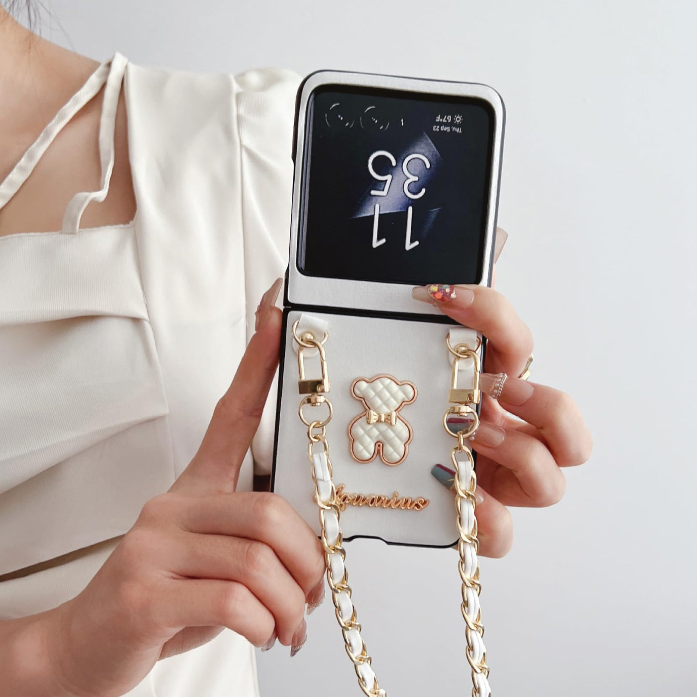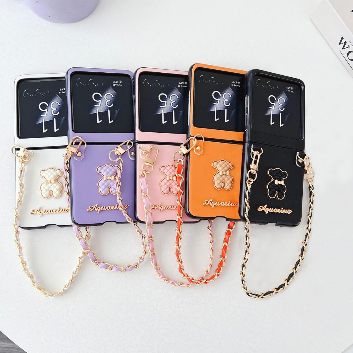 Q: What makes this case a good choice for women?A: This case features a chic and unique design with a cute bear motif and a removable chain, making it not only protective but also a fashionable accessory that can enhance your personal style.