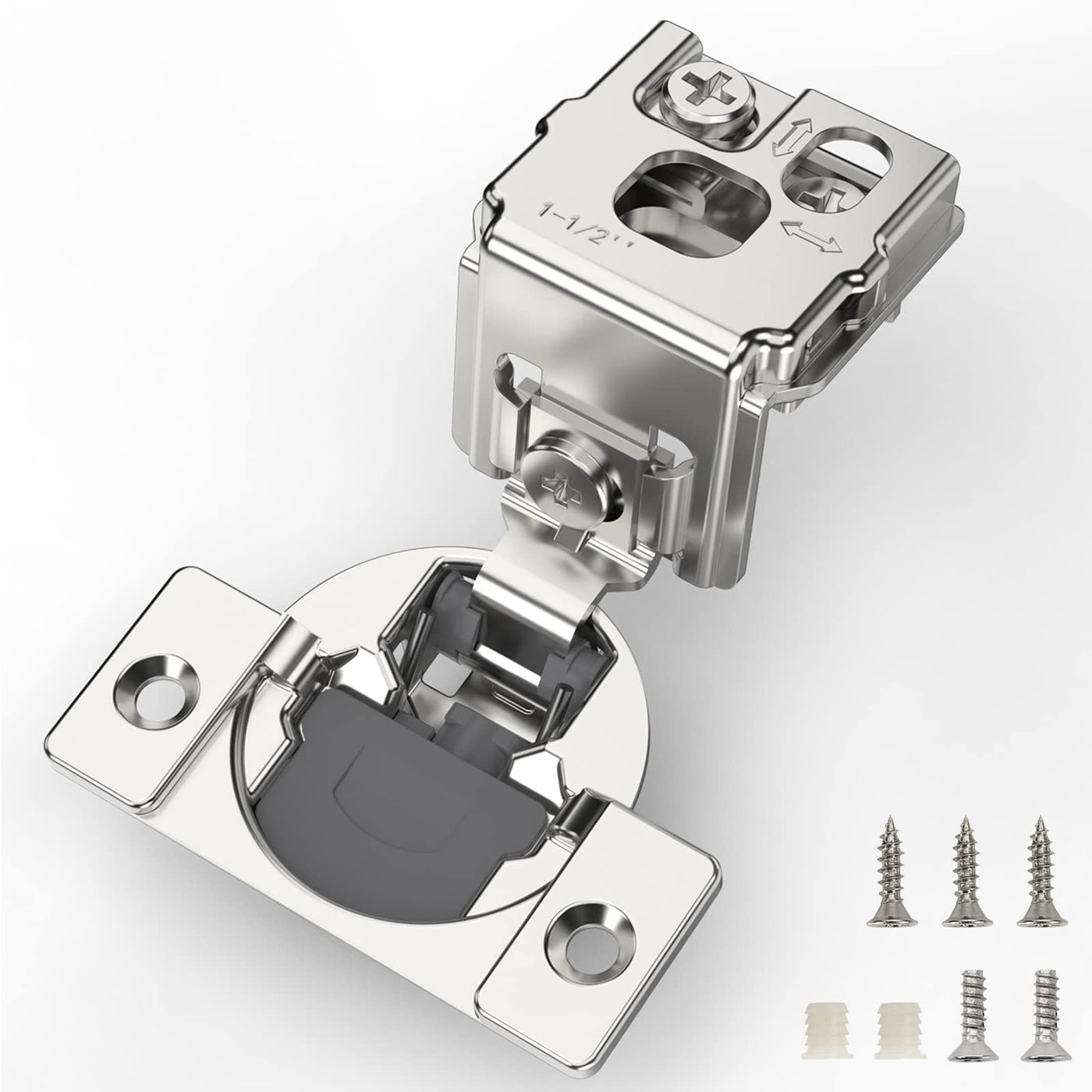 Specification: Color: Nickel Plated Material:Cold-Rolled Steel Size:1-12 Overlay Opening Angle:105 Degree Weight:18Oz(52G) For Each Hinge Package Included: 10 Pieces Hinges 20 Pcs Pre-Installed Dowels 30 Pcs Mounting Screws How To Choose A Hinge You Need To Pay Attention To The Thickness Of The Cabinet Side Panel(Measure The Distance The Door Panel Overlaps The Cabinet Face) Instead Of The Thickness Of The Cabinet Door You Must Choose The Cabinet Hinges That Fit The Side Thickness Of Your Cabinetfor Example,If The Thickness Of Cabinet Side Panel Is 1-12, Then You Should Choose The Corresponding 1-12 Hinge