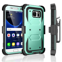 Galaxy S7 Case, Tekcoo [Tshell Series] [Turquoise] Shock Absorbing [Built In Screen Protector] Holster Locking Belt Clip Defende