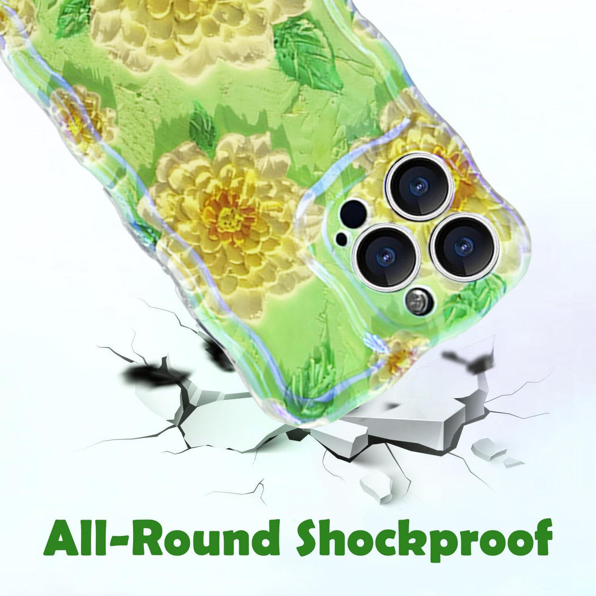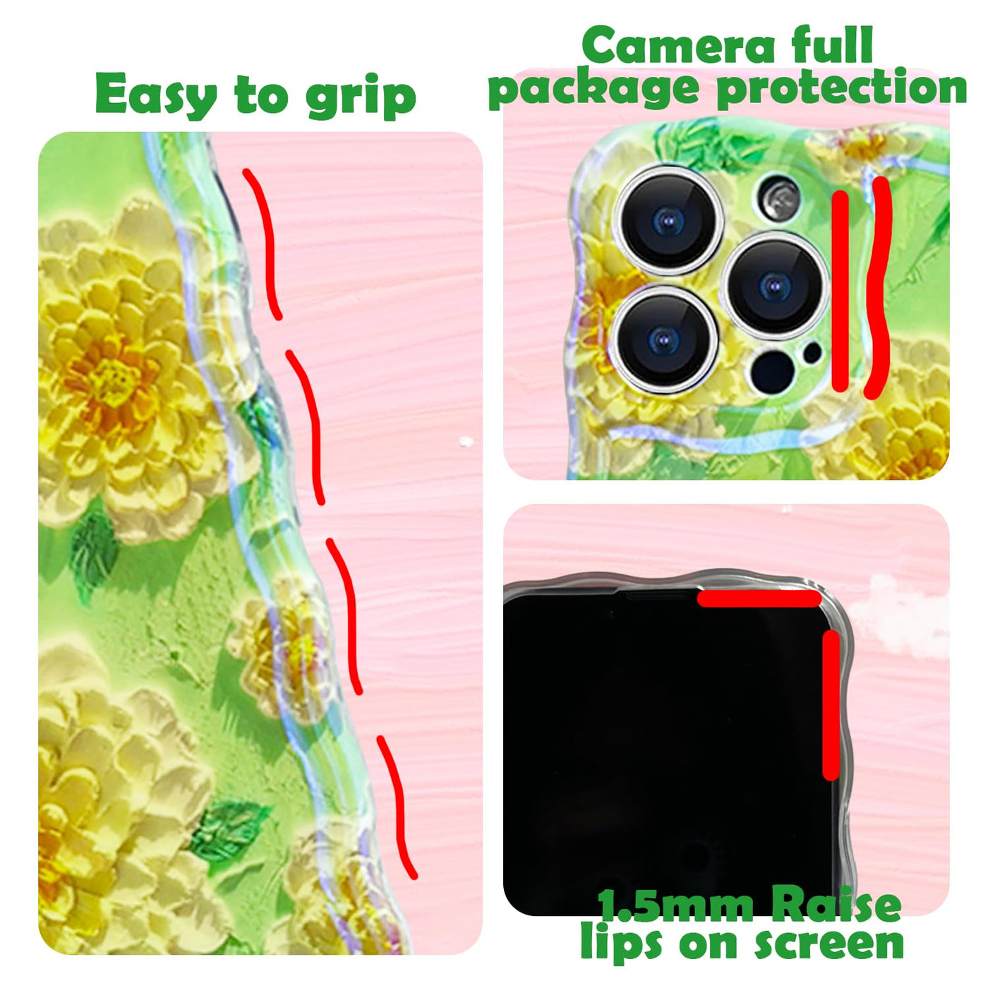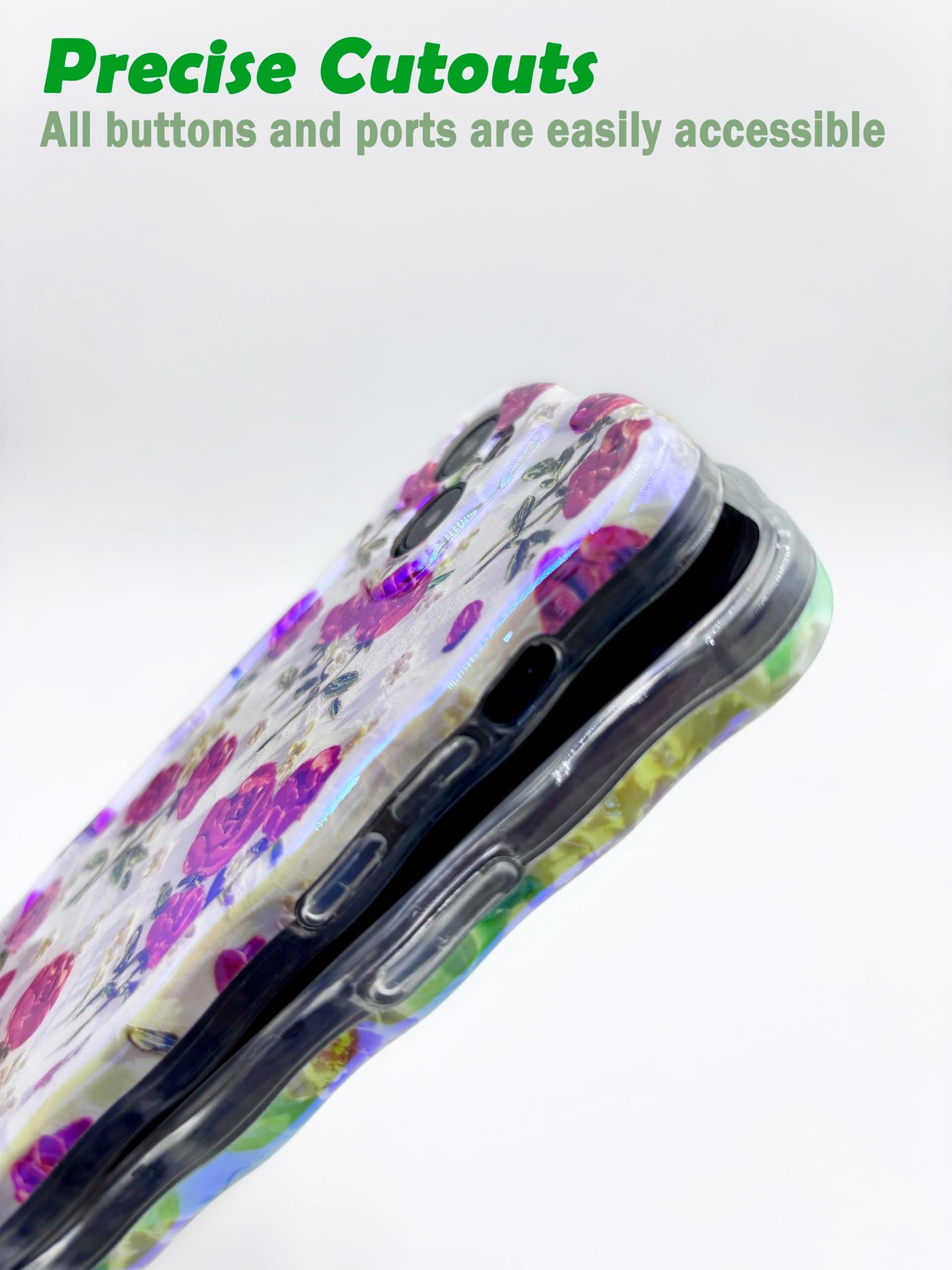 Case For Iphone 14 Pro Case,Cute Colorful Retro Oil Painting Printed Rose Flower Laser Glossy Pattern,Curly Wave Edge Soft Tpu Protective Camera Iphone 14 Pro Case For Girly Women