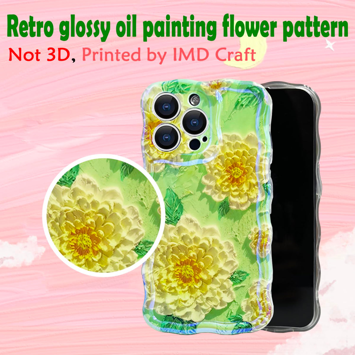 Gauterf Case For Iphone 14 Pro Case,Cute Colorful Retro Oil Painting Printed Rose Flower Laser Glossy Pattern,Curly Wave Edge So
