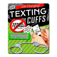 Texting Cuffs Thumb Cuffs For Serial Texting Just Say No To Serial Texting! Have You Ever Looked Forward To A Lunch Date With A Friend Or Family Dinner With Those You Love And Been Disappointed By The Lack Of Conversation Because Someone Would Look Up From Her Phone? Finally, We Have A Solution That Will Help You Just Say No To Serial Texting - Texting Cuffs Thumb Cuffs For Serial Texters! Slap Those Thumb Cuffs On The Texting Addicts Fingers And Enjoy Some Actual Verbal Conversation For Once! Declare No Texting Zones Not Only Will These Handy Texting Cuffs Help Silence The Never-Ending Clicking, But We Include Three Serial Texting: Just Say No! Decals Perfect For Sending A Clear Signal That A Serial Texter Has Entered A No Texting Zone. Proudly Display These Stickers In Locations Known For Being Texting Hot Spots: The Dinner Table, Toilet, And Car. Failure To Comply Just Might Lead To Some Fancy New Thumb Rings! You Have The Right To Remain Silent Our Hilarious Thumb Cuffs Make A Funny Gift For Teens And Tweens. They Come With A Handy Keyring Clip And Two Keys For Quick Release. Send The Message That Their Texting Is Driving You Crazy In The Funniest Way Possible, A Funny Cellphone Gift!