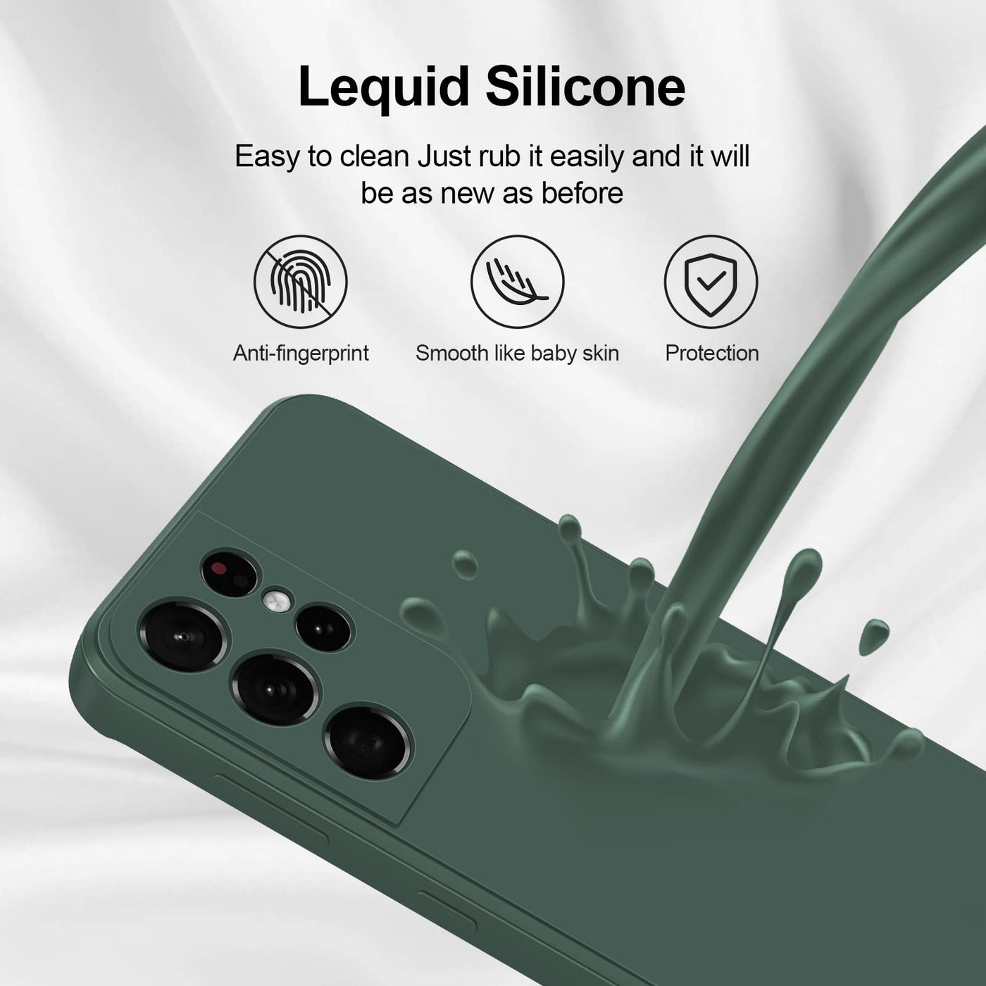 Q: How does the silicone material benefit the user?A: The high-quality silicone material offers a silky soft touch, good grip, and is scratch-resistant, while the microfiber lining inside keeps your phone's back protected from scratches.